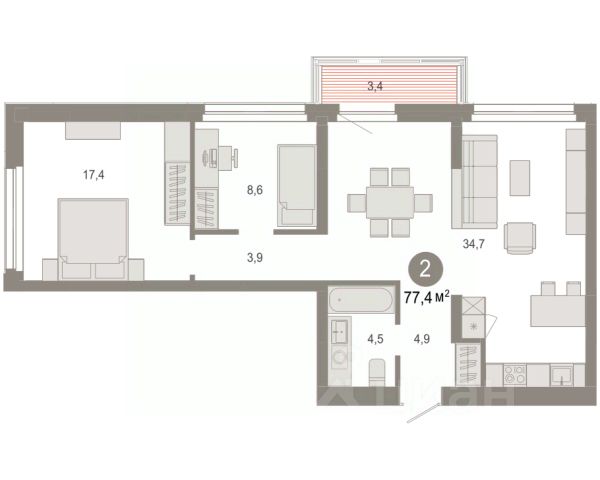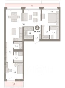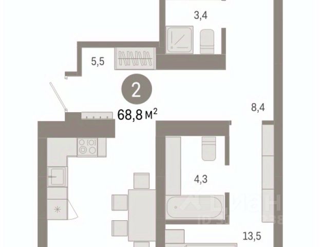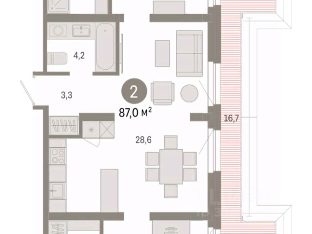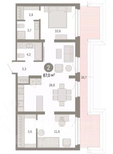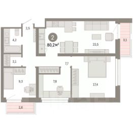 Просторная 2-комн. квартира с предчистовой отделкой в ЖК "Нефть" на 2 этаже. Общая площадь: 60.18 кв.м., жилая: 18.5 кв.м., площадь просторной кухни-гостиной: 24.6 кв.м. Комнаты изолированные, все окна выходят на одну сторону. В квартире один совмещенный санузел. Высота потолков 2.7 м. Дом монолитный, многоподъездный, переменной этажности, от 7 до 9 этажей. Квартира находится в 3-й секции высотой 9 этажей в корпусе 2. На этаже 8 квартир. В подъезде 1 пассажирский и 1 грузовой лифт. Окончание строительства - 3 квартал 2027 года. Оформление сделки по договору долевого участия. Квартира с кухней-гостиной и двумя спальнями в квартале "Нефть". Особенности планировки: гардеробная, вид во двор, разнесённые спальни, предчистовая отделка. квартиры в нашей базе: НФТ02-Ж3.2.7. Квартал "Нефть" построят в микрорайоне "нефтяников". Квартал состоит из четырёх жилых домов 7 — 9 этажей с акцентной башней в 17 этажей, подземными автостоянками и помещениями коммерческого назначения. Квартал находится в юго-западной части Сургута на пересечении Набережного проспекта и улицы Артёма. В районе уже сформированная инфраструктура. Рядом расположены три детских сада, университеты, парк и спортивная база. На первых этажах квартала спроектированы коммерческие помещения под повседневные сервисы для жителей: магазины, кафе, аптеки и другие полезные функции. Дом имеет переменную высотность 717 этажей. Секции высотой 7-9 этажей подразумевают небольшое количество соседей, спокойствие и приватность. Башня высотой в 17 этажей предлагает более динамичный характер проживания, здесь будет комфортно любителям активного городского ритма жизни. Дворы приватные и предназначены только для жителей. По стандартам Брусники зелень занимает 70% территории. В квартале "Нефть" озеленение выполнено по принципу долголетия ландшафта: оно плотное, разнообразное и многоярусное. Самый верхний ярус — взрослые деревья со сформированной кроной и высокие кустарники, ниже располагаются массивы кустарников среднего размера, нижний ярус — травы, многолетники и газон. Все растения подобраны с учётом сезонности и календаря цветения и сурового климата северного города. Осенью цвет ландшафта обеспечивает листва деревьев и кустарников, летом — цветение многолетников, зимой — вечнозелёные хвойные растения и кустарники с декоративными свойствами стеблей. #2SDO86