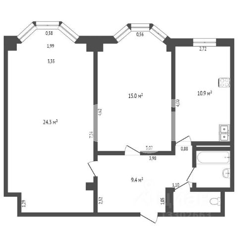 Квартира сухая, светлая, с удобной планировкой и большими комнатами. Раздельный санузел. Вместительная гардеробная комната.