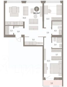 Просторная 2-комн. квартира с предчистовой отделкой в ЖК "Нефть" на 7 этаже. Двухуровневая квартира, множество вариантов распределения полезного пространства. Общая площадь: 140.95 кв.м., жилая: 25.4 кв.м., площадь просторной кухни-гостиной: 25.4 кв.м. Комнаты изолированные, все окна выходят на одну сторону. В квартире один балкон и одна лоджия, два совмещенных санузла. Наличие в квартире террасы дает возможность для обустройства дополнительной площади. Высота потолков 2.7 м. Дом монолитный, многоподъездный, переменной этажности, от 7 до 9 этажей. Квартира находится в 1-й секции высотой 7 этажей в корпусе 2. На этаже 10 квартир. В подъезде 1 пассажирский и 1 грузовой лифт. Окончание строительства - 3 квартал 2027 года. Оформление сделки по договору долевого участия. Двухуровневая квартира с кухней-гостиной и двумя спальнями в квартале "Нефть". Особенности планировки: двухуровневая, вид во двор, свободная планировка, балкон, терраса на крыше. квартиры в нашей базе: НФТ02-Ж1.7.1. Квартал "Нефть" построят в микрорайоне "нефтяников". Квартал состоит из четырёх жилых домов 7 — 9 этажей с акцентной башней в 17 этажей, подземными автостоянками и помещениями коммерческого назначения. Квартал находится в юго-западной части Сургута на пересечении Набережного проспекта и улицы Артёма. В районе уже сформированная инфраструктура. Рядом расположены три детских сада, университеты, парк и спортивная база. На первых этажах квартала спроектированы коммерческие помещения под повседневные сервисы для жителей: магазины, кафе, аптеки и другие полезные функции. Дом имеет переменную высотность 717 этажей. Секции высотой 7-9 этажей подразумевают небольшое количество соседей, спокойствие и приватность. Башня высотой в 17 этажей предлагает более динамичный характер проживания, здесь будет комфортно любителям активного городского ритма жизни. Дворы приватные и предназначены только для жителей. По стандартам Брусники зелень занимает 70% территории. В квартале "Нефть" озеленение выполнено по принципу долголетия ландшафта: оно плотное, разнообразное и многоярусное. Самый верхний ярус — взрослые деревья со сформированной кроной и высокие кустарники, ниже располагаются массивы кустарников среднего размера, нижний ярус — травы, многолетники и газон. Все растения подобраны с учётом сезонности и календаря цветения и сурового климата северного города. Осенью цвет ландшафта обеспечивает листва деревьев и кустарников, летом — цветение многолетников, зимой — вечнозелёные хвойные растения и кустарники с декоративными свойствами стеблей. #2sdo6w