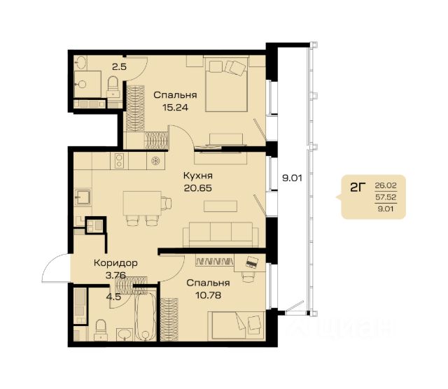 Продаётся 2-комнатная квартира в строящемся доме (Дом 1), срок сдачи: I-кв. 2027, общей площадью 52.21 кв.м., на 18 этаже. Новый жилой комплекс "Симфония 18" от застройщика "СЗ Строй Актив" расположен по адресу: г. Сургут, улица Семена Билецкого.
