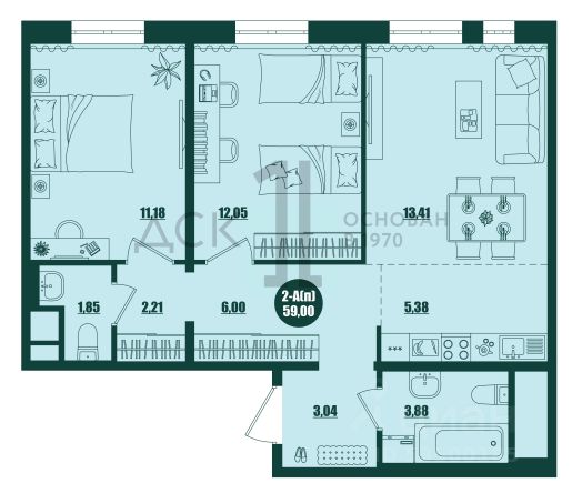 Продаётся 2-комнатная квартира в строящемся доме (Дом 1 корпус 1,2,3), срок сдачи: IV-кв. 2025, общей площадью 58.82 кв.м., на 14 этаже. Новый жилой комплекс "Крылов" от застройщика "ДСК-1" расположен по адресу: г. Сургут, улица Крылова.