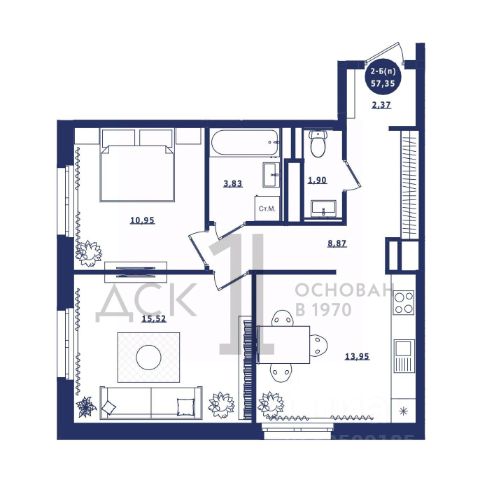 Продаётся 2-комнатная квартира в сданном доме (Дом 3 корпус 1,2), срок сдачи: IV-кв. 2023, общей площадью 57.35 кв.м., на 6 этаже. Новый жилой комплекс "Крылов" от застройщика "ДСК-1" расположен по адресу: г. Сургут, улица Крылова.