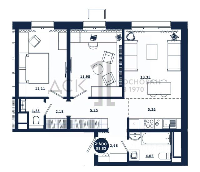 Продаётся 2-комнатная квартира в сданном доме (Дом 3 корпус 1,2), срок сдачи: IV-кв. 2023, общей площадью 57.35 кв.м., на 11 этаже. Новый жилой комплекс "Крылов" от застройщика "ДСК-1" расположен по адресу: г. Сургут, улица Крылова.