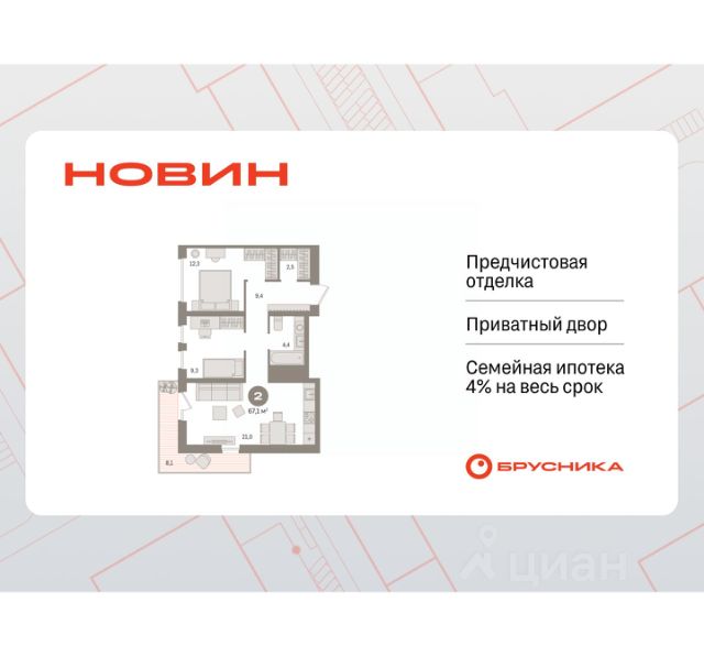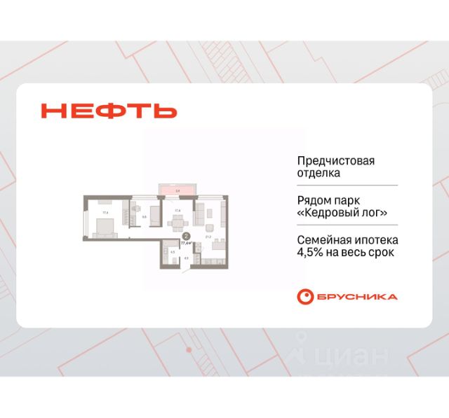 Просторная 2-комн. квартира с предчистовой отделкой в ЖК "Нефть" на 5 этаже. Общая площадь: 61.62 кв.м., жилая: 21.6 кв.м., площадь просторной кухни-гостиной: 17.1 кв.м. Комнаты изолированные, все окна выходят на одну сторону. В квартире две лоджии, два совмещенных санузла. Высота потолков 2.7 м. Дом монолитный, многоподъездный, переменной этажности, от 7 до 9 этажей. Квартира находится в 6-й секции высотой 9 этажей в корпусе 2. На этаже 5 квартир. В подъезде 1 пассажирский и 1 грузовой лифт. Окончание строительства - 3 квартал 2027 года. Оформление сделки по договору долевого участия. Квартира с кухней-гостиной и двумя спальнями в квартале "Нефть". Особенности планировки: гардеробная, лоджия, мастер-спальня, предчистовая отделка, разнесённые спальни. квартиры в нашей базе: НФТ02-Ж6.5.3. Квартал "Нефть" построят в микрорайоне "нефтяников". Квартал состоит из четырёх жилых домов 7 — 9 этажей с акцентной башней в 17 этажей, подземными автостоянками и помещениями коммерческого назначения. Квартал находится в юго-западной части Сургута на пересечении Набережного проспекта и улицы Артёма. В районе уже сформированная инфраструктура. Рядом расположены три детских сада, университеты, парк и спортивная база. На первых этажах квартала спроектированы коммерческие помещения под повседневные сервисы для жителей: магазины, кафе, аптеки и другие полезные функции. Дом имеет переменную высотность 717 этажей. Секции высотой 7-9 этажей подразумевают небольшое количество соседей, спокойствие и приватность. Башня высотой в 17 этажей предлагает более динамичный характер проживания, здесь будет комфортно любителям активного городского ритма жизни. Дворы приватные и предназначены только для жителей. По стандартам Брусники зелень занимает 70% территории. В квартале "Нефть" озеленение выполнено по принципу долголетия ландшафта: оно плотное, разнообразное и многоярусное. Самый верхний ярус — взрослые деревья со сформированной кроной и высокие кустарники, ниже располагаются массивы кустарников среднего размера, нижний ярус — травы, многолетники и газон. Все растения подобраны с учётом сезонности и календаря цветения и сурового климата северного города. Осенью цвет ландшафта обеспечивает листва деревьев и кустарников, летом — цветение многолетников, зимой — вечнозелёные хвойные растения и кустарники с декоративными свойствами стеблей. #2sdO26 Продам 2-комнатную квартиру в новостройке с отделкой в Сургуте.
