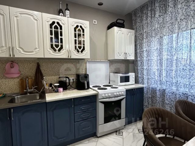 Квартира с косметическим ремонтом 7-летней давности: потолки - побелка, в коридоре и ванной комнате потолок подвесной. Входная дверь металлическая. Двери в квартире деревянные: дверь в большую комнату двустворчатая с цветным желтым стеклом, дверь в кухню с матовым стеклом и декором, над ней витраж из цветного стекла. Окна выходят на запад, деревянные с двойными рамами на кухне и в маленькой комнате, евроокна из дерева в большой комнате и на балконе. Выход на балкон из большой комнаты. Балкон не утеплен. Пол в комнатах ламинат повышенной плотности, на кухне плитка с подогревом, в санузле и ванной плитка, в коридоре ламинат из пластика, в зоне прихожей плитка. В квартире имеется кладовая. Ванная комната полноценная (ванная и раковина с тумбой), имеются отдельные смесители над ванной и раковиной. Туалет отдельный. Кухня отдельная. Варочная поверхность электрическая. Квартира теплая: на батарее в большой комнате установлены заглушки, принудительно перекрывающие доступ горячей воды. Интернет-коммуникации подведены. Мебель, бытовая техника остаются по договоренности. На лестничной площадке расположены 3 квартиры. Мусоропровод расположен на лестничной площадке между этажами. На первом этаже есть просторная кладовая для хранения вещей общего пользования. Домофон в рабочем состоянии. В доме 3 года назад выполнен капитальный ремонт фасада и крыши, покраска стен и побелка потолков в подъезде. Подъезды в чистоте и порядке. Лифта нет. Соседи доброжелательные. Двор тихий с небольшой парковой зоной, беседкой, скамейками. Много парковочных мест. Две оборудованные детские площадки. Продуктовый магазин во дворе.