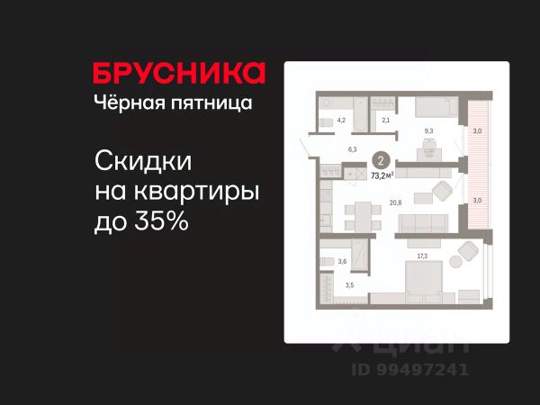 Продается 2-комн. квартира с предчистовой отделкой в ЖК "Нефть" на 7 этаже. Общая площадь: 72.88 кв.м., жилая: 23.1 кв.м., площадь просторной кухни-гостиной: 21.9 кв.м. Квартира - распашонка, без проходных комнат, окна выходят на paзные стороны дома. В квартире один балкон, два совмещенных санузла. Высота потолков 2.7 м. Дом монолитный, многоподъездный, переменной этажности, от 7 до 9 этажей. Квартира находится в 4-й секции высотой 9 этажей в корпусе 2. На этаже 6 квартир. В подъезде 1 пассажирский и 1 грузовой лифт. Окончание строительства - 3 квартал 2027 года. Оформление сделки по договору долевого участия. Квартира с кухней-гостиной и двумя спальнями в квартале "Нефть". Особенности планировки: окна на две стороны, гардеробная, вид во двор, разнесённые спальни, предчистовая отделка, мастер-спальня, балкон. квартиры в нашей базе: НФТ02-Ж4.7.6. Квартал "Нефть" построят в микрорайоне "нефтяников". Квартал состоит из четырёх жилых домов 7 — 9 этажей с акцентной башней в 17 этажей, подземными автостоянками и помещениями коммерческого назначения. Квартал находится в юго-западной части Сургута на пересечении Набережного проспекта и улицы Артёма. В районе уже сформированная инфраструктура. Рядом расположены три детских сада, университеты, парк и спортивная база. На первых этажах квартала спроектированы коммерческие помещения под повседневные сервисы для жителей: магазины, кафе, аптеки и другие полезные функции. Дом имеет переменную высотность 717 этажей. Секции высотой 7-9 этажей подразумевают небольшое количество соседей, спокойствие и приватность. Башня высотой в 17 этажей предлагает более динамичный характер проживания, здесь будет комфортно любителям активного городского ритма жизни. Дворы приватные и предназначены только для жителей. По стандартам Брусники зелень занимает 70% территории. В квартале "Нефть" озеленение выполнено по принципу долголетия ландшафта: оно плотное, разнообразное и многоярусное. Самый верхний ярус — взрослые деревья со сформированной кроной и высокие кустарники, ниже располагаются массивы кустарников среднего размера, нижний ярус — травы, многолетники и газон. Все растения подобраны с учётом сезонности и календаря цветения и сурового климата северного города. Осенью цвет ландшафта обеспечивает листва деревьев и кустарников, летом — цветение многолетников, зимой — вечнозелёные хвойные растения и кустарники с декоративными свойствами стеблей. #25Do9S