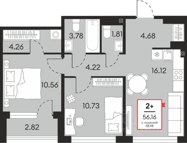 • ✅ Минимальная площадь: 55,7 м²