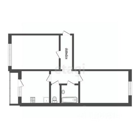 Блочный дом. Общая площадь 51,5 кв.м., жилая площадь 30,3 кв.м., кухня 7,3 кв.м.