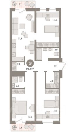 ДОМ ГОТОВ. КЛЮЧИ В ДЕНЬ СДЕЛКИ! Продается уютная трехкомнатная видовая квартира 221 площадью 91,8 кв.м. с большой лоджией, гардеробной и кухней-гостиной площадью 16,9 кв.м., тремя комнатами площадью 15,9 м2, 14,4 м2, и 13,5 м2, в жилом комплексе "Набережный". Общая площадь квартиры — 91,8 кв.м., жилая — 60,7 кв.м. Это идеальное место для комфортной жизни вашей семьи! Более того, в квартире предусмотрена большая прихожая, где можно легко разместить вещи всей семьи, не загромождая пространство. И три комнаты, которые можно сделать кабинетом, детской, уютной спальней - вашим личным уголком для отдыха и восстановления сил. В квартире 1 совмещенный санузел площадью 4,5 кв.м. и отдельный санузел площадью 1,9 м2, что обеспечит вам удобство и пространство для большой семьи. - Дом расположен рядом с набережной. Здесь вы сможете насладиться прогулками и активным отдыхом всей семьёй. - В доме вас ждут дизайнерские холлы с консьерж-службой и колясочные. - Ваша безопасность и сохранность имущества обеспечены системой видеонаблюдения. - Для удобства предусмотрен комфортный подземный и наземный паркинг. - Для детей разного возраста есть современные игровые и спортивные площадки с безопасным покрытием. - Также в доме есть отдельная площадка для выгула собак, а в каждом подъезде — мойка для лап. 25-этажный дом на стадии завершения строительства. В строительстве используются трёхслойные стеновые панели по финской технологии. Доступны скидки от застройщика и выгодные ипотечные программы, чтобы сделать покупку еще более доступной! 3-комнатная квартира, примерная площадь 100 м2 в Сургуте.