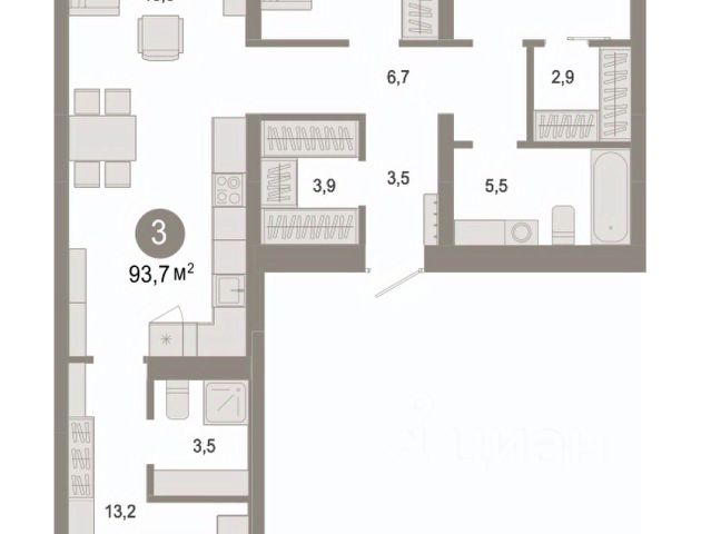 Трехкомнатная квартира от застройщика с предчистовой отделкой в ЖК "Нефть" на 16 этаже. Общая площадь: 126.6 кв.м., жилая: 43.3 кв.м., площадь просторной кухни-гостиной: 33.7 кв.м. Квартира без проходных комнат, окна выходят нa три cтopoны дома. В квартире три лоджии, два совмещенных санузла. Высота потолков 2.7 м. Дом монолитный, многоподъездный, переменной этажности, от 7 до 17 этажей. Квартира находится в 3-й секции высотой 17 этажей в корпусе 1. На этаже 8 квартир. В подъезде 1 пассажирский и 1 грузовой лифт. Окончание строительства - 2 квартал 2027 года. Оформление сделки по договору долевого участия. Квартира с кухней-гостиной и тремя спальнями в квартале "Нефть". Особенности планировки: окно в коридоре, гардеробная, окна в пол, вид во двор, лоджия, разнесённые спальни, предчистовая отделка, мастер-спальня, постирочная. квартиры в нашей базе: НФТ01-Ж3.16.4. Квартал "Нефть" построят в микрорайоне "нефтяников". Квартал состоит из четырёх жилых домов 7 — 9 этажей с акцентной башней в 17 этажей, подземными автостоянками и помещениями коммерческого назначения. Квартал находится в юго-западной части Сургута на пересечении Набережного проспекта и улицы Артёма. В районе уже сформированная инфраструктура. Рядом расположены три детских сада, университеты, парк и спортивная база. На первых этажах квартала спроектированы коммерческие помещения под повседневные сервисы для жителей: магазины, кафе, аптеки и другие полезные функции. Дом имеет переменную высотность 717 этажей. Секции высотой 7-9 этажей подразумевают небольшое количество соседей, спокойствие и приватность. Башня высотой в 17 этажей предлагает более динамичный характер проживания, здесь будет комфортно любителям активного городского ритма жизни. Дворы приватные и предназначены только для жителей. По стандартам Брусники зелень занимает 70% территории. В квартале "Нефть" озеленение выполнено по принципу долголетия ландшафта: оно плотное, разнообразное и многоярусное. Самый верхний ярус — взрослые деревья со сформированной кроной и высокие кустарники, ниже располагаются массивы кустарников среднего размера, нижний ярус — травы, многолетники и газон. Все растения подобраны с учётом сезонности и календаря цветения и сурового климата северного города. Осенью цвет ландшафта обеспечивает листва деревьев и кустарников, летом — цветение многолетников, зимой — вечнозелёные хвойные растения и кустарники с декоративными свойствами стеблей. #Zwbft0