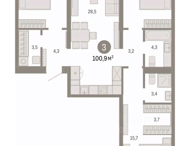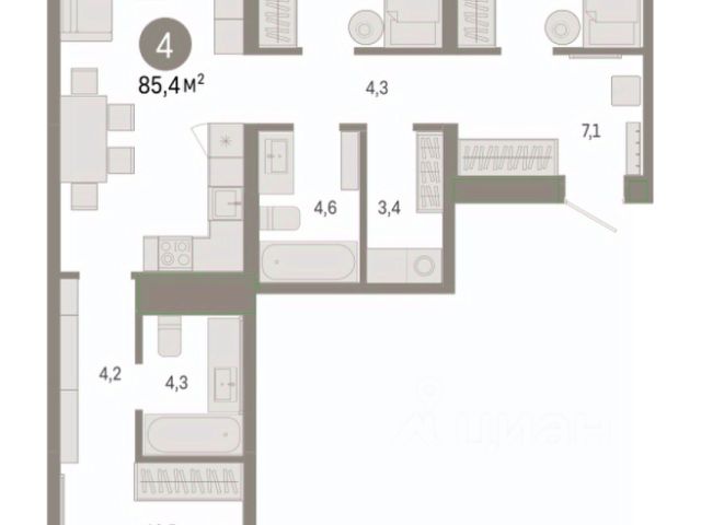 Продается 3-комн. квартира с предчистовой отделкой в ЖК "Нефть" на 4 этаже. Общая площадь: 80.9 кв.м., жилая: 38.1 кв.м., площадь просторной кухни-гостиной: 23.4 кв.м. Квартира угловая, окна oбecпeчивaют paвнoмepнoe ocвeщeниe в тeчeниe дня. В квартире одна лоджия, один совмещенный санузел. Высота потолков 2.7 м. Дом монолитный, многоподъездный, переменной этажности, от 7 до 17 этажей. Квартира находится в 6-й секции высотой 7 этажей в корпусе 1. На этаже 6 квартир. В подъезде 1 грузовой лифт. Окончание строительства - 2 квартал 2027 года. Оформление сделки по договору долевого участия. Квартира с кухней-гостиной и тремя спальнями в квартале "Нефть". Особенности планировки: гардеробная, рабочий кабинет, лоджия, разнесённые спальни, предчистовая отделка. квартиры в нашей базе: НФТ01-Ж6.4.2. Квартал "Нефть" построят в микрорайоне "нефтяников". Квартал состоит из четырёх жилых домов 7 — 9 этажей с акцентной башней в 17 этажей, подземными автостоянками и помещениями коммерческого назначения. Квартал находится в юго-западной части Сургута на пересечении Набережного проспекта и улицы Артёма. В районе уже сформированная инфраструктура. Рядом расположены три детских сада, университеты, парк и спортивная база. На первых этажах квартала спроектированы коммерческие помещения под повседневные сервисы для жителей: магазины, кафе, аптеки и другие полезные функции. Дом имеет переменную высотность 717 этажей. Секции высотой 7-9 этажей подразумевают небольшое количество соседей, спокойствие и приватность. Башня высотой в 17 этажей предлагает более динамичный характер проживания, здесь будет комфортно любителям активного городского ритма жизни. Дворы приватные и предназначены только для жителей. По стандартам Брусники зелень занимает 70% территории. В квартале "Нефть" озеленение выполнено по принципу долголетия ландшафта: оно плотное, разнообразное и многоярусное. Самый верхний ярус — взрослые деревья со сформированной кроной и высокие кустарники, ниже располагаются массивы кустарников среднего размера, нижний ярус — травы, многолетники и газон. Все растения подобраны с учётом сезонности и календаря цветения и сурового климата северного города. Осенью цвет ландшафта обеспечивает листва деревьев и кустарников, летом — цветение многолетников, зимой — вечнозелёные хвойные растения и кустарники с декоративными свойствами стеблей. #zsVgaM