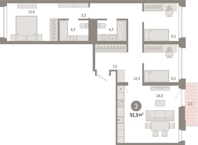 Продаётся 3-комнатная квартира в строящемся доме (НФТ1), срок сдачи: II-кв. 2027, общей площадью 85.4 кв.м., на 5 этаже. Новый жилой комплекс "по пр. Набережный" от застройщика "Брусника" расположен по адресу: г. Сургут, Набережный проспект.