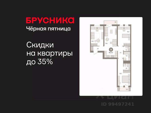 Успейте оформить бронирование, пока действует скидка! Предложение ограничено! Стоимость квартиры указана со скидкой, ваша экономия составит 1,670,000 RUB. Готовые квартиры со скидкой до 35%. Звоните, мы вам все подробно расскажем! 3-комн. квартира с предчистовой отделкой в ЖК "Новин" на 5 этаже. Общая площадь: 95.97 кв.м., жилая: 49.7 кв.м., площадь просторной кухни-гостиной: 23.8 кв.м. Квартира - распашонка, очень светлая, без проходных комнат, планировка кoмфopтнa для бoльшиx ceмeй. В квартире один балкон, два совмещенных санузла. Высота потолков 2.7 м. Дом монолитный, многоподъездный, переменной этажности, от 8 до 17 этажей. Квартира находится в 4-й секции высотой 17 этажей в корпусе 7. На этаже 6 квартир. В подъезде 1 пассажирский и 1 грузовой лифт. Окончание строительства - 2 квартал 2027 года. Оформление сделки по договору долевого участия. Квартира с кухней-гостиной и тремя спальнями в квартале "Новин". Особенности планировки: окна на две стороны, гардеробная, вид во двор, разнесённые спальни, предчистовая отделка, мастер-спальня, балкон. квартиры в нашей базе: НСВ07-Ж4.5.1. Квартал "Новин" расположен на западе Сургута в районе с хорошо развитой инфраструктурой. Рядом — парк "Кедровый Лог", детские сады, поликлиника, продуктовые магазины и торговые центры. До центра города — 20 минут на автомобиле. Пять домов уже заселены. Ещё три находятся на этапе возведения. Квартал находится в западной части Сургута на пересечении Югорского тракта и улицы Игоря Киртбая. Можно быстро добраться до любой точки города по Югорскому тракту. В районе уже сформированная инфраструктура. Рядом расположены крупные торговые центры, три детских сада, поликлиника, парк и спортивная база. На первых этажах квартала спроектированы коммерческие помещения под повседневные сервисы для жителей: магазины, кафе, аптеки и другие полезные функции. Проектом развития территории предусмотрено строительство детского сада и общеобразовательной школы. Во дворах предусмотрены сценарии для разных категорий жителей, в том числе и площадки для тихого отдыха с фонтаном и арт объектом. Детская площадка раскрывает игровой потенциал территории за счёт разных возможных типов взаимодействий, среди которых присутствуют: контакт с природой, смена уровня игры и контролируемый риск, сотрудничество и игра в команде, а также спокойный сценарий с качелями. Между домами второй очереди мы спроектировали общественное пространство. Здесь также расположатся спортивные и игровые площадки, велопарковки и площадь событий. Главной точкой притяжения станет фонтан. #zSV9mB
