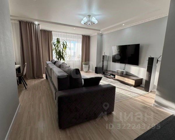 Сердце квартиры - это большая кухня-гостиная 45 м2 с панорамными окнами. Зимой здесь можно разместить большую нарядную елку, которая создаст атмосферу уюта и семейного праздника, а летом, расположившись в кресле-качалке, можно наблюдать красивые закаты с чашечкой ароматного чая. Также в квартире имеется: