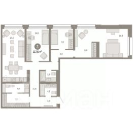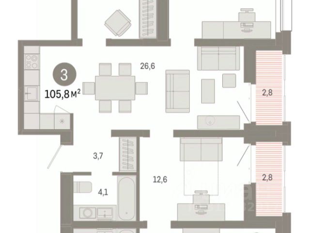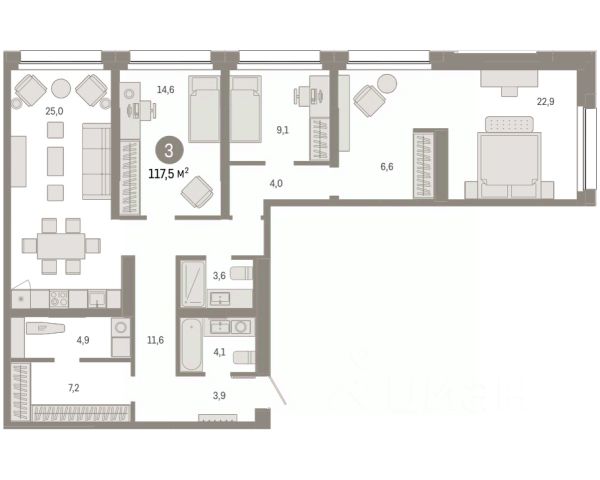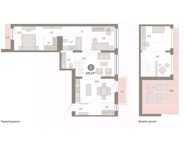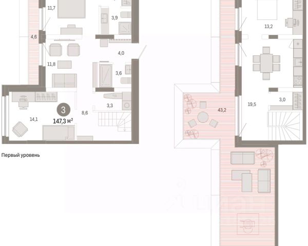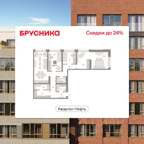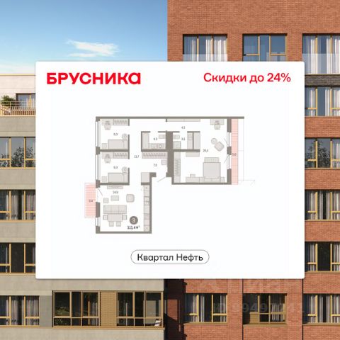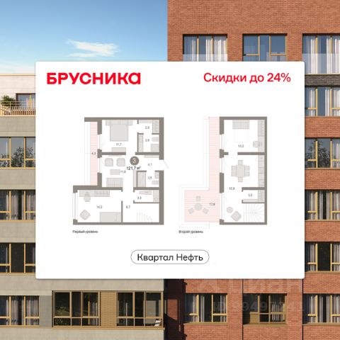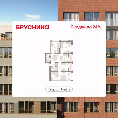 Продается 3-комн. квартира с предчистовой отделкой в ЖК "Нефть" на 7 этаже. Двухуровневая квартира, большое количество свободного пространства дает возможность воплотить в жизнь свои дизайнерские идеи. Общая площадь: 122.6 кв.м., жилая: 39 кв.м., площадь просторной кухни-гостиной: 19.5 кв.м. Комнаты изолированные, все окна выходят на одну сторону. В квартире один балкон и одна лоджия, два совмещенных и один раздельный санузел. Терраса представляет собой роскошную зону отдыха для проведение вечеров в кругу семьи и друзей или организация вечеринок. Высота потолков 2.7 м. Дом монолитный, многоподъездный, переменной этажности, от 7 до 17 этажей. Квартира находится в 1-й секции высотой 7 этажей в корпусе 1. На этаже 10 квартир. В подъезде 1 грузовой лифт. Окончание строительства - 2 квартал 2027 года. Оформление сделки по договору долевого участия. Двухуровневая квартира с кухней-гостиной и тремя спальнями в квартале "Нефть". Особенности планировки: двухуровневая, свободная планировка, терраса на крыше. квартиры в нашей базе: НФТ01-Ж1.7.4. Квартал "Нефть" построят в микрорайоне "нефтяников". Квартал состоит из четырёх жилых домов 7 — 9 этажей с акцентной башней в 17 этажей, подземными автостоянками и помещениями коммерческого назначения. Квартал находится в юго-западной части Сургута на пересечении Набережного проспекта и улицы Артёма. В районе уже сформированная инфраструктура. Рядом расположены три детских сада, университеты, парк и спортивная база. На первых этажах квартала спроектированы коммерческие помещения под повседневные сервисы для жителей: магазины, кафе, аптеки и другие полезные функции. Дом имеет переменную высотность 717 этажей. Секции высотой 7-9 этажей подразумевают небольшое количество соседей, спокойствие и приватность. Башня высотой в 17 этажей предлагает более динамичный характер проживания, здесь будет комфортно любителям активного городского ритма жизни. Дворы приватные и предназначены только для жителей. По стандартам Брусники зелень занимает 70% территории. В квартале "Нефть" озеленение выполнено по принципу долголетия ландшафта: оно плотное, разнообразное и многоярусное. Самый верхний ярус — взрослые деревья со сформированной кроной и высокие кустарники, ниже располагаются массивы кустарников среднего размера, нижний ярус — травы, многолетники и газон. Все растения подобраны с учётом сезонности и календаря цветения и сурового климата северного города. Осенью цвет ландшафта обеспечивает листва деревьев и кустарников, летом — цветение многолетников, зимой — вечнозелёные хвойные растения и кустарники с декоративными свойствами стеблей. #ZWbf23