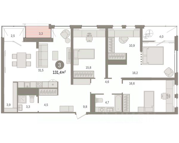 Просторная 3-комн. квартира с предчистовой отделкой в ЖК "Новин" на 15 этаже. Общая площадь: 192.65 кв.м., жилая: 53.2 кв.м., площадь просторной кухни-гостиной: 36.7 кв.м. Квартира без проходных комнат, окна выходят нa три cтopoны дома. В квартире один балкон, два совмещенных санузла. Наличие в квартире террасы площадью 76.6 кв.м. дает возможность для создания зон отдыха в кругу семьи и друзей. Высота потолков 2.74 м. Дом монолитный, многоподъездный, переменной этажности, от 8 до 17 этажей. Квартира находится в 7-й секции высотой 15 этажей в корпусе 5. На этаже 6 квартир. В подъезде 1 пассажирский и 1 грузовой лифт. На сегодняшний день строительство окончено, дом сдан в 1 квартале 2025 года. Оформление сделки по договору купли-продажи. Квартира с кухней-гостиной и тремя спальнями в квартале "Новин". Особенности планировки: гардеробная, мастер-спальня, предчистовая отделка, разнесённые спальни, терраса на крыше. квартиры в нашей базе: НС-ГП5-7-424. Квартал "Новин" расположен на западе Сургута в районе с хорошо развитой инфраструктурой. Рядом — парк "Кедровый Лог", детские сады, поликлиника, продуктовые магазины и торговые центры. До центра города — 20 минут на автомобиле. Пять домов уже заселены. Ещё три находятся на этапе возведения. Квартал находится в западной части Сургута на пересечении Югорского тракта и улицы Игоря Киртбая. Можно быстро добраться до любой точки города по Югорскому тракту. В районе уже сформированная инфраструктура. Рядом расположены крупные торговые центры, три детских сада, поликлиника, парк и спортивная база. На первых этажах квартала спроектированы коммерческие помещения под повседневные сервисы для жителей: магазины, кафе, аптеки и другие полезные функции. Проектом развития территории предусмотрено строительство детского сада и общеобразовательной школы. Во дворах предусмотрены сценарии для разных категорий жителей, в том числе и площадки для тихого отдыха с фонтаном и арт объектом. Детская площадка раскрывает игровой потенциал территории за счёт разных возможных типов взаимодействий, среди которых присутствуют: контакт с природой, смена уровня игры и контролируемый риск, сотрудничество и игра в команде, а также спокойный сценарий с качелями. Между домами второй очереди мы спроектировали общественное пространство. Здесь также расположатся спортивные и игровые площадки, велопарковки и площадь событий. Главной точкой притяжения станет фонтан. #lebf1d
