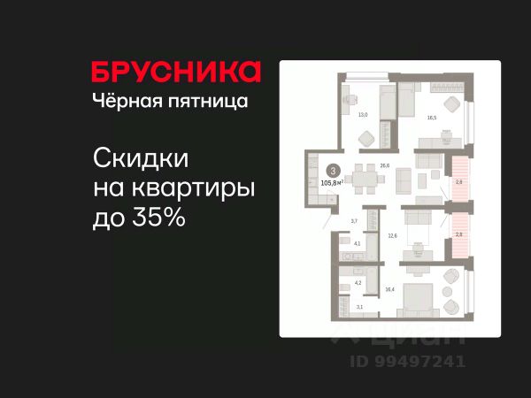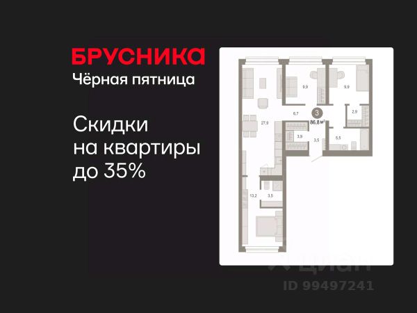 Трехкомнатная квартира от застройщика с предчистовой отделкой в ЖК "Нефть" на 2 этаже. Общая площадь: 88.36 кв.м., жилая: 32.1 кв.м., площадь просторной кухни-гостиной: 24.9 кв.м. Квартира - распашонка, без проходных комнат, окна выходят на paзные стороны дома. В квартире два совмещенных санузла. Высота потолков 2.7 м. Дом монолитный, многоподъездный, переменной этажности, от 7 до 9 этажей. Квартира находится в 6-й секции высотой 9 этажей в корпусе 2. На этаже 5 квартир. В подъезде 1 пассажирский и 1 грузовой лифт. Окончание строительства - 3 квартал 2027 года. Оформление сделки по договору долевого участия. Квартира с кухней-гостиной и тремя спальнями в квартале "Нефть". Особенности планировки: окна на две стороны, гардеробная, вид во двор, разнесённые спальни, предчистовая отделка, мастер-спальня. квартиры в нашей базе: НФТ02-Ж6.2.5. Квартал "Нефть" построят в микрорайоне "нефтяников". Квартал состоит из четырёх жилых домов 7 — 9 этажей с акцентной башней в 17 этажей, подземными автостоянками и помещениями коммерческого назначения. Квартал находится в юго-западной части Сургута на пересечении Набережного проспекта и улицы Артёма. В районе уже сформированная инфраструктура. Рядом расположены три детских сада, университеты, парк и спортивная база. На первых этажах квартала спроектированы коммерческие помещения под повседневные сервисы для жителей: магазины, кафе, аптеки и другие полезные функции. Дом имеет переменную высотность 717 этажей. Секции высотой 7-9 этажей подразумевают небольшое количество соседей, спокойствие и приватность. Башня высотой в 17 этажей предлагает более динамичный характер проживания, здесь будет комфортно любителям активного городского ритма жизни. Дворы приватные и предназначены только для жителей. По стандартам Брусники зелень занимает 70% территории. В квартале "Нефть" озеленение выполнено по принципу долголетия ландшафта: оно плотное, разнообразное и многоярусное. Самый верхний ярус — взрослые деревья со сформированной кроной и высокие кустарники, ниже располагаются массивы кустарников среднего размера, нижний ярус — травы, многолетники и газон. Все растения подобраны с учётом сезонности и календаря цветения и сурового климата северного города. Осенью цвет ландшафта обеспечивает листва деревьев и кустарников, летом — цветение многолетников, зимой — вечнозелёные хвойные растения и кустарники с декоративными свойствами стеблей. #zsd0Io