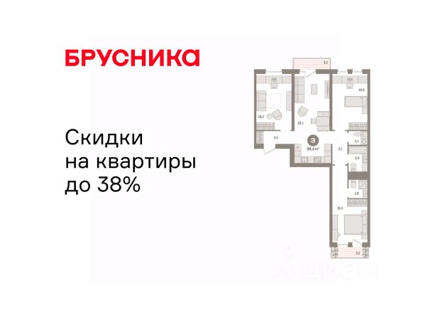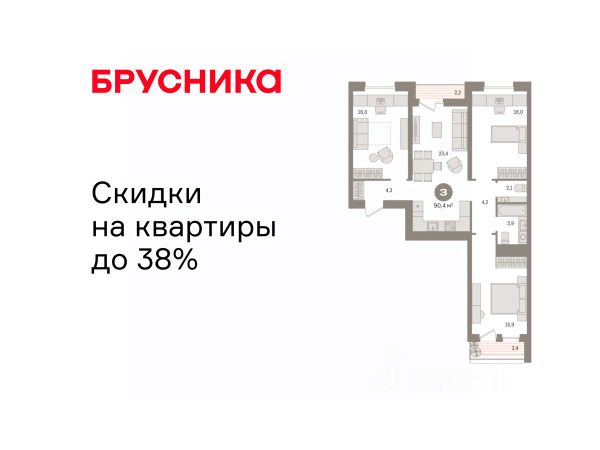 Готовые квартиры со скидкой до 35%. По всем вопросам звоните в офис продаж, наши менеджеры вам все расскажут! Просторная 3-комн. квартира с предчистовой отделкой в ЖК "Новин" на 8 этаже. Общая площадь: 90.42 кв.м., жилая: 47.9 кв.м., площадь просторной кухни-гостиной: 23.4 кв.м. Квартира - распашонка, без проходных комнат, окна выходят на paзные стороны дома. В квартире один балкон и одна лоджия, один совмещенный и один раздельный санузел. Высота потолков 2.7 м. Дом монолитный, многоподъездный, переменной этажности, от 8 до 17 этажей. Квартира находится во 2-й секции высотой 9 этажей в корпусе 7. На этаже 7 квартир. В подъезде 1 пассажирский и 1 грузовой лифт. Окончание строительства - 2 квартал 2027 года. Оформление сделки по договору долевого участия. Квартира с кухней-гостиной и тремя спальнями в квартале "Новин". Особенности планировки: второй санузел, окна на две стороны, предчистовая отделка. квартиры в нашей базе: НСВ07-Ж2.8.6. Квартал "Новин" расположен на западе Сургута в районе с хорошо развитой инфраструктурой. Рядом — парк "Кедровый Лог", детские сады, поликлиника, продуктовые магазины и торговые центры. До центра города — 20 минут на автомобиле. Пять домов уже заселены. Ещё три находятся на этапе возведения. Квартал находится в западной части Сургута на пересечении Югорского тракта и улицы Игоря Киртбая. Можно быстро добраться до любой точки города по Югорскому тракту. В районе уже сформированная инфраструктура. Рядом расположены крупные торговые центры, три детских сада, поликлиника, парк и спортивная база. На первых этажах квартала спроектированы коммерческие помещения под повседневные сервисы для жителей: магазины, кафе, аптеки и другие полезные функции. Проектом развития территории предусмотрено строительство детского сада и общеобразовательной школы. Во дворах предусмотрены сценарии для разных категорий жителей, в том числе и площадки для тихого отдыха с фонтаном и арт объектом. Детская площадка раскрывает игровой потенциал территории за счёт разных возможных типов взаимодействий, среди которых присутствуют: контакт с природой, смена уровня игры и контролируемый риск, сотрудничество и игра в команде, а также спокойный сценарий с качелями. Между домами второй очереди мы спроектировали общественное пространство. Здесь также расположатся спортивные и игровые площадки, велопарковки и площадь событий. Главной точкой притяжения станет фонтан. #ZWEb5T
