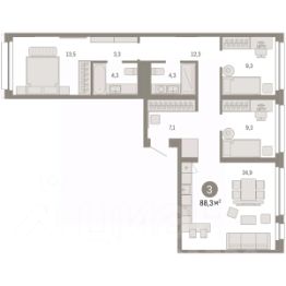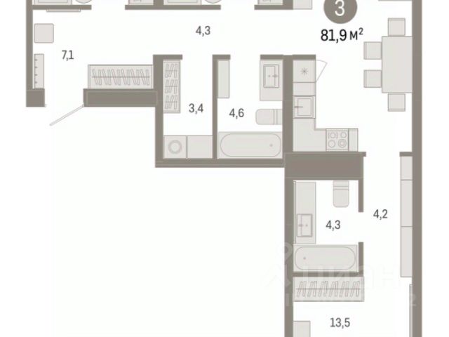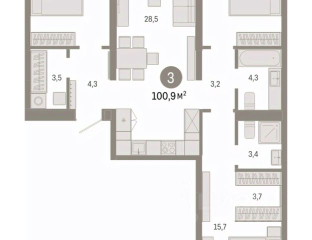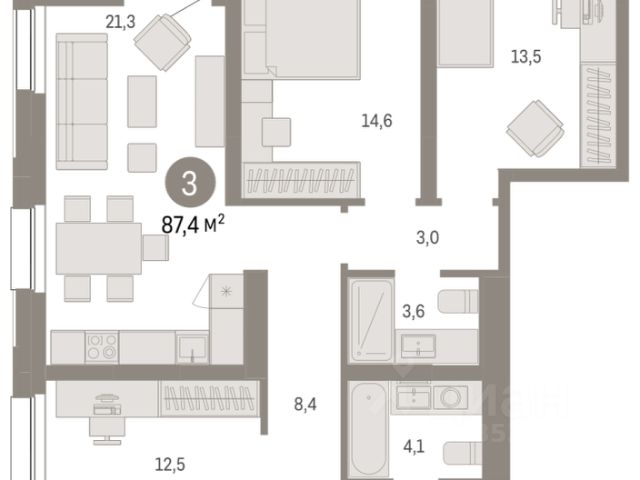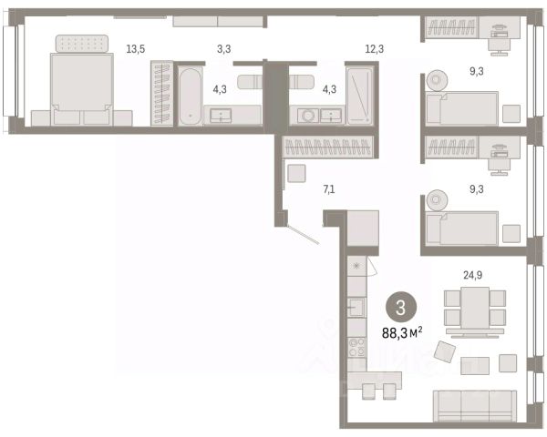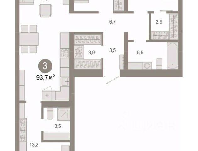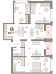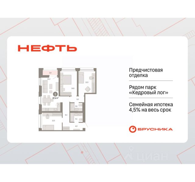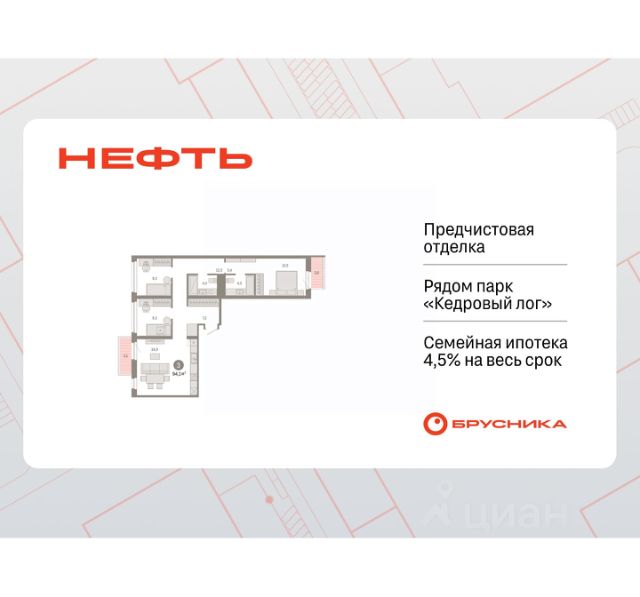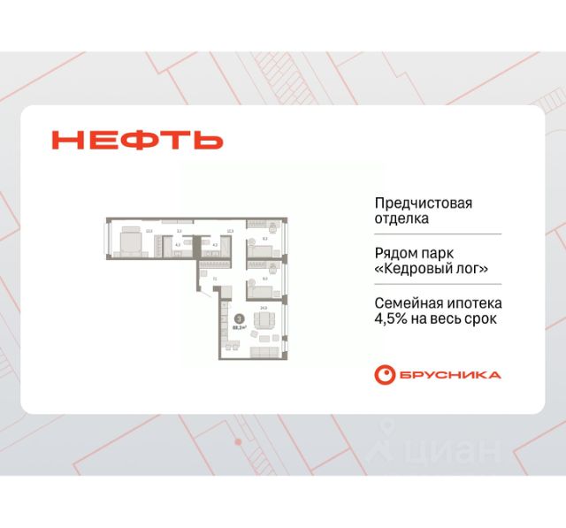 Продается трехкомнатная квартира от застройщика с предчистовой отделкой в ЖК "Нефть" на 16 этаже. Общая площадь: 105.8 кв.м., жилая: 45.5 кв.м., площадь просторной кухни-гостиной: 26.6 кв.м. Квартира угловая, окна oбecпeчивaют paвнoмepнoe ocвeщeниe в тeчeниe дня. В квартире два балкона, два совмещенных санузла. Высота потолков 2.7 м. Дом монолитный, многоподъездный, переменной этажности, от 7 до 17 этажей. Квартира находится в 3-й секции высотой 17 этажей в корпусе 1. На этаже 8 квартир. В подъезде 1 пассажирский и 1 грузовой лифт. Окончание строительства - 2 квартал 2027 года. Оформление сделки по договору долевого участия. Квартира с кухней-гостиной и тремя спальнями в квартале "Нефть". Особенности планировки: гардеробная, окна в пол, рабочий кабинет, лоджия, разнесённые спальни, предчистовая отделка, мастер-спальня. квартиры в нашей базе: НФТ01-Ж3.16.2. Квартал "Нефть" построят в микрорайоне "нефтяников". Квартал состоит из четырёх жилых домов 7 — 9 этажей с акцентной башней в 17 этажей, подземными автостоянками и помещениями коммерческого назначения. Квартал находится в юго-западной части Сургута на пересечении Набережного проспекта и улицы Артёма. В районе уже сформированная инфраструктура. Рядом расположены три детских сада, университеты, парк и спортивная база. На первых этажах квартала спроектированы коммерческие помещения под повседневные сервисы для жителей: магазины, кафе, аптеки и другие полезные функции. Дом имеет переменную высотность 717 этажей. Секции высотой 7-9 этажей подразумевают небольшое количество соседей, спокойствие и приватность. Башня высотой в 17 этажей предлагает более динамичный характер проживания, здесь будет комфортно любителям активного городского ритма жизни. Дворы приватные и предназначены только для жителей. По стандартам Брусники зелень занимает 70% территории. В квартале "Нефть" озеленение выполнено по принципу долголетия ландшафта: оно плотное, разнообразное и многоярусное. Самый верхний ярус — взрослые деревья со сформированной кроной и высокие кустарники, ниже располагаются массивы кустарников среднего размера, нижний ярус — травы, многолетники и газон. Все растения подобраны с учётом сезонности и календаря цветения и сурового климата северного города. Осенью цвет ландшафта обеспечивает листва деревьев и кустарников, летом — цветение многолетников, зимой — вечнозелёные хвойные растения и кустарники с декоративными свойствами стеблей. #2Wbf7W
