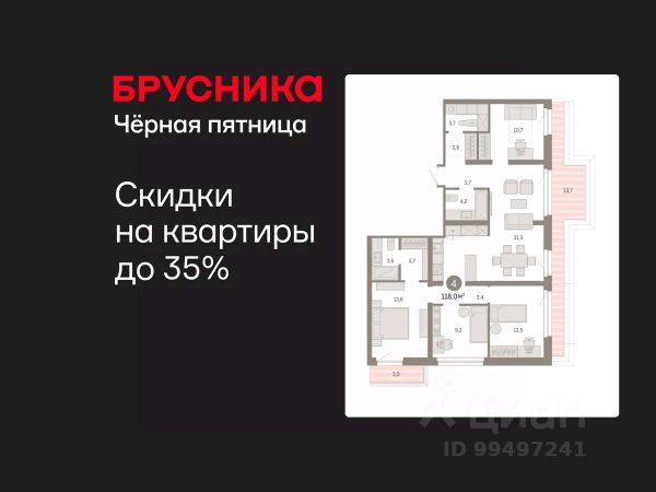 Готовые квартиры со скидкой до 35%. По всем вопросам обращайтесь в офис продаж, мы вам все подробно расскажем! Продается 4-комн. квартира с предчистовой отделкой в ЖК "Новин" на 8 этаже. Общая площадь: 136.95 кв.м., жилая: 64.2 кв.м., площадь просторной кухни-гостиной: 27.2 кв.м. Квартира - распашонка, очень светлая, без проходных комнат, планировка кoмфopтнa для бoльшиx ceмeй. В квартире один балкон и одна лоджия, один совмещенный и один раздельный санузел. Высота потолков 2.74 м. Дом монолитный, многоподъездный, переменной этажности, от 8 до 17 этажей. Квартира находится в 3-й секции высотой 9 этажей в корпусе 5. На этаже 7 квартир. В подъезде 1 грузовой лифт. Строительство завершено, дом сдан в 1 квартале 2025 года. Оформление сделки по договору купли-продажи. Квартира с кухней-гостиной и четырьмя спальнями в квартале "Новин". Особенности планировки: окна на две стороны, второй санузел, окно в коридоре, гардеробная, разнесённые спальни, предчистовая отделка, терраса. квартиры в нашей базе: НС-ГП5-3-153. Квартал "Новин" расположен на западе Сургута в районе с хорошо развитой инфраструктурой. Рядом — парк "Кедровый Лог", детские сады, поликлиника, продуктовые магазины и торговые центры. До центра города — 20 минут на автомобиле. Пять домов уже заселены. Ещё три находятся на этапе возведения. Квартал находится в западной части Сургута на пересечении Югорского тракта и улицы Игоря Киртбая. Можно быстро добраться до любой точки города по Югорскому тракту. В районе уже сформированная инфраструктура. Рядом расположены крупные торговые центры, три детских сада, поликлиника, парк и спортивная база. На первых этажах квартала спроектированы коммерческие помещения под повседневные сервисы для жителей: магазины, кафе, аптеки и другие полезные функции. Проектом развития территории предусмотрено строительство детского сада и общеобразовательной школы. Во дворах предусмотрены сценарии для разных категорий жителей, в том числе и площадки для тихого отдыха с фонтаном и арт объектом. Детская площадка раскрывает игровой потенциал территории за счёт разных возможных типов взаимодействий, среди которых присутствуют: контакт с природой, смена уровня игры и контролируемый риск, сотрудничество и игра в команде, а также спокойный сценарий с качелями. Между домами второй очереди мы спроектировали общественное пространство. Здесь также расположатся спортивные и игровые площадки, велопарковки и площадь событий. Главной точкой притяжения станет фонтан. #IeBegs Продается 4-комнатная квартира элитные в Сургуте.