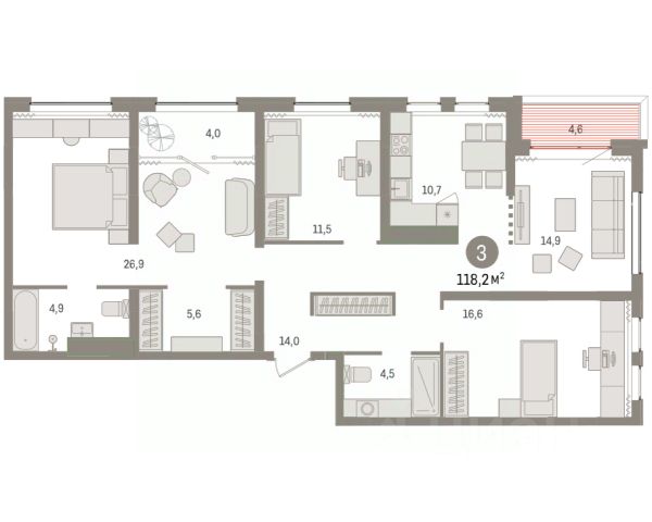 4-комн. квартира с предчистовой отделкой в ЖК "Нефть" на 7 этаже. Двухуровневая квартира, планировка позволяет организовать индивидуальное пространство для каждого члена семьи. Общая площадь: 201.67 кв.м., жилая: 64.3 кв.м., площадь просторной кухни-гостиной: 34.3 кв.м. Квартира угловая, очень светлая, естественная вентиляция при открытии окон. В квартире два балкона, два совмещенных и один раздельный санузел. Наличие в квартире террасы открывает возможность для создания зон отдыха в кругу семьи и друзей. Высота потолков 2.7 м. Дом монолитный, многоподъездный, переменной этажности, от 7 до 9 этажей. Квартира находится в 1-й секции высотой 7 этажей в корпусе 2. На этаже 10 квартир. В подъезде 1 пассажирский и 1 грузовой лифт. Окончание строительства - 3 квартал 2027 года. Оформление сделки по договору долевого участия. Двухуровневая квартира с кухней-гостиной и четырьмя спальнями в квартале "Нефть". Особенности планировки: балкон, двухуровневая, предчистовая отделка, терраса на крыше. квартиры в нашей базе: НФТ02-Ж1.7.5. Квартал "Нефть" построят в микрорайоне "нефтяников". Квартал состоит из четырёх жилых домов 7 — 9 этажей с акцентной башней в 17 этажей, подземными автостоянками и помещениями коммерческого назначения. Квартал находится в юго-западной части Сургута на пересечении Набережного проспекта и улицы Артёма. В районе уже сформированная инфраструктура. Рядом расположены три детских сада, университеты, парк и спортивная база. На первых этажах квартала спроектированы коммерческие помещения под повседневные сервисы для жителей: магазины, кафе, аптеки и другие полезные функции. Дом имеет переменную высотность 717 этажей. Секции высотой 7-9 этажей подразумевают небольшое количество соседей, спокойствие и приватность. Башня высотой в 17 этажей предлагает более динамичный характер проживания, здесь будет комфортно любителям активного городского ритма жизни. Дворы приватные и предназначены только для жителей. По стандартам Брусники зелень занимает 70% территории. В квартале "Нефть" озеленение выполнено по принципу долголетия ландшафта: оно плотное, разнообразное и многоярусное. Самый верхний ярус — взрослые деревья со сформированной кроной и высокие кустарники, ниже располагаются массивы кустарников среднего размера, нижний ярус — травы, многолетники и газон. Все растения подобраны с учётом сезонности и календаря цветения и сурового климата северного города. Осенью цвет ландшафта обеспечивает листва деревьев и кустарников, летом — цветение многолетников, зимой — вечнозелёные хвойные растения и кустарники с декоративными свойствами стеблей. #Z5DOl1