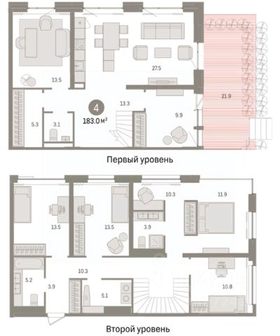 4-комн. квартира с предчистовой отделкой в ЖК "Новин" на 1 этаже. Двухуровневая квартира с возможностью разделения гостевой зоны и личного пространства. Общая площадь: 182.97 кв.м., жилая: 49.7 кв.м., площадь просторной кухни-гостиной: 27.5 кв.м. Квартира угловая, окна oбecпeчивaют paвнoмepнoe ocвeщeниe в тeчeниe дня. В квартире один балкон, два совмещенных и один раздельный санузел. Терраса площадью 21.9 кв.м. представляет собой роскошную зону отдыха, где вы на свой вкус можете создать атмосферу комфорта и уюта. Высота потолков 2.74 м. Дом монолитный, многоподъездный, переменной этажности, от 8 до 17 этажей. Квартира находится в 7-й секции высотой 17 этажей в корпусе 8. На этаже 6 квартир. В подъезде 2 пассажирских и 1 грузовой лифт. На сегодняшний день строительство окончено, дом сдан в 1 квартале 2024 года. Оформление сделки по договору купли-продажи. Двухуровневая квартира с кухней-гостиной и четырьмя спальнями в квартале "Новин". Особенности планировки: второй санузел, гардеробная, двухуровневая, постирочная, предчистовая отделка, терраса. квартиры в нашей базе: НС-ГП8-7-317. Квартал "Новин" расположен на западе Сургута в районе с хорошо развитой инфраструктурой. Рядом — парк "Кедровый Лог", детские сады, поликлиника, продуктовые магазины и торговые центры. До центра города — 20 минут на автомобиле. Пять домов уже заселены. Ещё три находятся на этапе возведения. Квартал находится в западной части Сургута на пересечении Югорского тракта и улицы Игоря Киртбая. Можно быстро добраться до любой точки города по Югорскому тракту. В районе уже сформированная инфраструктура. Рядом расположены крупные торговые центры, три детских сада, поликлиника, парк и спортивная база. На первых этажах квартала спроектированы коммерческие помещения под повседневные сервисы для жителей: магазины, кафе, аптеки и другие полезные функции. Проектом развития территории предусмотрено строительство детского сада и общеобразовательной школы. Во дворах предусмотрены сценарии для разных категорий жителей, в том числе и площадки для тихого отдыха с фонтаном и арт объектом. Детская площадка раскрывает игровой потенциал территории за счёт разных возможных типов взаимодействий, среди которых присутствуют: контакт с природой, смена уровня игры и контролируемый риск, сотрудничество и игра в команде, а также спокойный сценарий с качелями. Между домами второй очереди мы спроектировали общественное пространство. Здесь также расположатся спортивные и игровые площадки, велопарковки и площадь событий. Главной точкой притяжения станет фонтан. #IEbEsZ Купить 4-комнатную квартиру в монолитном доме в Сургуте.