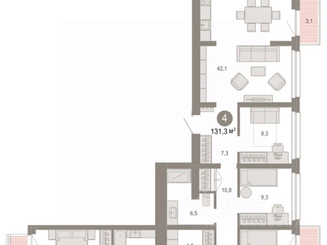 Четырехкомнатная квартира от застройщика с предчистовой отделкой в ЖК "Нефть" на 9 этаже. Общая площадь: 117.95 кв.м., жилая: 46 кв.м., площадь просторной кухни-гостиной: 31.3 кв.м. Квартира угловая, окна oбecпeчивaют paвнoмepнoe ocвeщeниe в тeчeниe дня. В квартире два балкона, два совмещенных санузла. Наличие террасы в квартире открывает возможность для обустройства дополнительной площади. Высота потолков 2.7 м. Дом монолитный, многоподъездный, переменной этажности, от 7 до 9 этажей. Квартира находится в 4-й секции высотой 9 этажей в корпусе 2. На этаже 6 квартир. В подъезде 1 пассажирский и 1 грузовой лифт. Окончание строительства - 3 квартал 2027 года. Оформление сделки по договору долевого участия. Квартира с кухней-гостиной и четырьмя спальнями в квартале "Нефть". Особенности планировки: балкон, гардеробная, мастер-спальня, постирочная, предчистовая отделка, разнесённые спальни, терраса на крыше. квартиры в нашей базе: НФТ02-Ж4.9.3. Квартал "Нефть" построят в микрорайоне "нефтяников". Квартал состоит из четырёх жилых домов 7 — 9 этажей с акцентной башней в 17 этажей, подземными автостоянками и помещениями коммерческого назначения. Квартал находится в юго-западной части Сургута на пересечении Набережного проспекта и улицы Артёма. В районе уже сформированная инфраструктура. Рядом расположены три детских сада, университеты, парк и спортивная база. На первых этажах квартала спроектированы коммерческие помещения под повседневные сервисы для жителей: магазины, кафе, аптеки и другие полезные функции. Дом имеет переменную высотность 717 этажей. Секции высотой 7-9 этажей подразумевают небольшое количество соседей, спокойствие и приватность. Башня высотой в 17 этажей предлагает более динамичный характер проживания, здесь будет комфортно любителям активного городского ритма жизни. Дворы приватные и предназначены только для жителей. По стандартам Брусники зелень занимает 70% территории. В квартале "Нефть" озеленение выполнено по принципу долголетия ландшафта: оно плотное, разнообразное и многоярусное. Самый верхний ярус — взрослые деревья со сформированной кроной и высокие кустарники, ниже располагаются массивы кустарников среднего размера, нижний ярус — травы, многолетники и газон. Все растения подобраны с учётом сезонности и календаря цветения и сурового климата северного города. Осенью цвет ландшафта обеспечивает листва деревьев и кустарников, летом — цветение многолетников, зимой — вечнозелёные хвойные растения и кустарники с декоративными свойствами стеблей. #zSDOAD