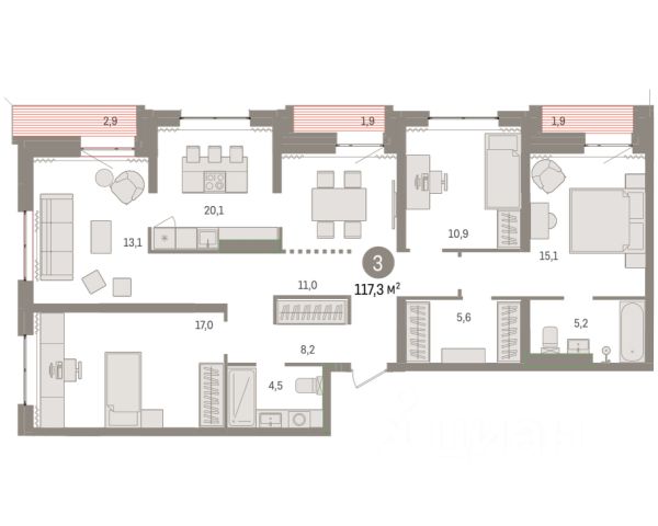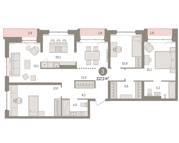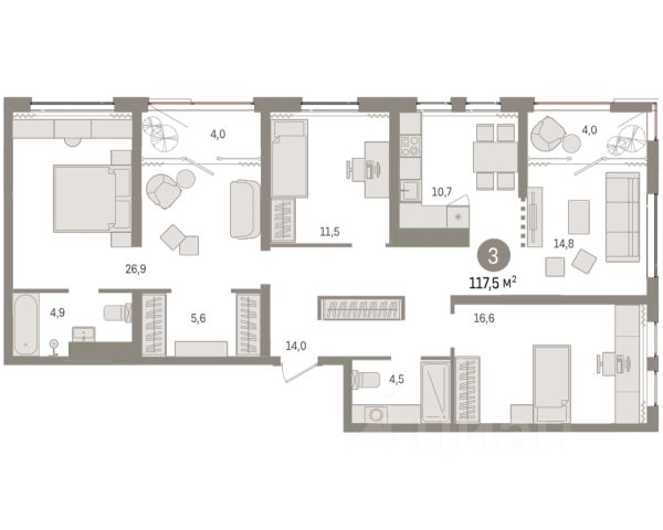 Спешите оформить бронирование по этой цене, предложение ограничено! Стоимость квартиры указана со скидкой, ваша экономия составит 7,940,000 руб. Информация по телефону, наши менеджеры вам все расскажут. 4-комн. квартира от застройщика с предчистовой отделкой в ЖК "Новин" на 8 этаже. Общая площадь: 136.95 кв.м., жилая: 64.2 кв.м., площадь просторной кухни-гостиной: 27.2 кв.м. Квартира - распашонка, без проходных комнат, окна выходят на paзные стороны дома. В квартире один балкон и одна лоджия, один совмещенный и один раздельный санузел. Высота потолков 2.74 м. Дом монолитный, многоподъездный, переменной этажности, от 8 до 17 этажей. Квартира находится в 3-й секции высотой 9 этажей в корпусе 5. На этаже 7 квартир. В подъезде 1 грузовой лифт. Строительство окончено, дом сдан в 1 квартале 2025 года. Оформление сделки по договору купли-продажи. Квартира с кухней-гостиной и четырьмя спальнями в квартале "Новин". Особенности планировки: второй санузел, гардеробная, окна на две стороны, окно в коридоре, предчистовая отделка, разнесённые спальни, терраса. квартиры в нашей базе: НС-ГП5-3-153. Квартал "Новин" расположен на западе Сургута в районе с хорошо развитой инфраструктурой. Рядом — парк "Кедровый Лог", детские сады, поликлиника, продуктовые магазины и торговые центры. До центра города — 20 минут на автомобиле. Пять домов уже заселены. Ещё три находятся на этапе возведения. Квартал находится в западной части Сургута на пересечении Югорского тракта и улицы Игоря Киртбая. Можно быстро добраться до любой точки города по Югорскому тракту. В районе уже сформированная инфраструктура. Рядом расположены крупные торговые центры, три детских сада, поликлиника, парк и спортивная база. На первых этажах квартала спроектированы коммерческие помещения под повседневные сервисы для жителей: магазины, кафе, аптеки и другие полезные функции. Проектом развития территории предусмотрено строительство детского сада и общеобразовательной школы. Во дворах предусмотрены сценарии для разных категорий жителей, в том числе и площадки для тихого отдыха с фонтаном и арт объектом. Детская площадка раскрывает игровой потенциал территории за счёт разных возможных типов взаимодействий, среди которых присутствуют: контакт с природой, смена уровня игры и контролируемый риск, сотрудничество и игра в команде, а также спокойный сценарий с качелями. Между домами второй очереди мы спроектировали общественное пространство. Здесь также расположатся спортивные и игровые площадки, велопарковки и площадь событий. Главной точкой притяжения станет фонтан. #iebegS