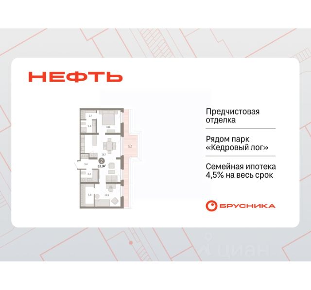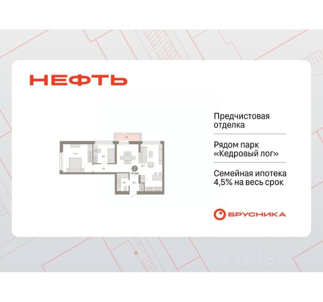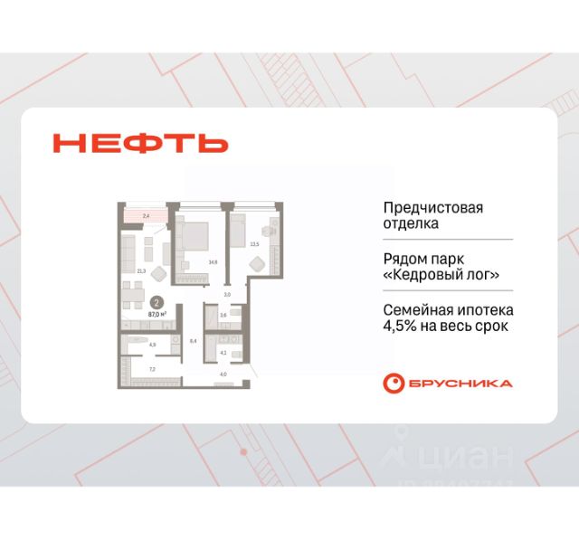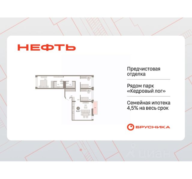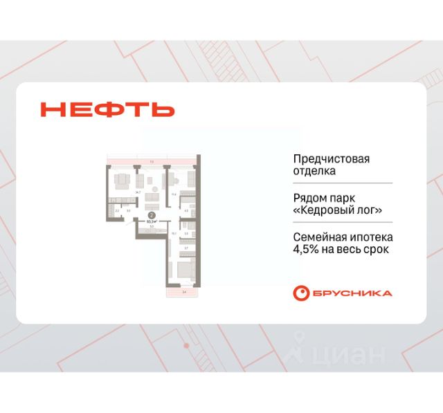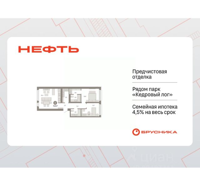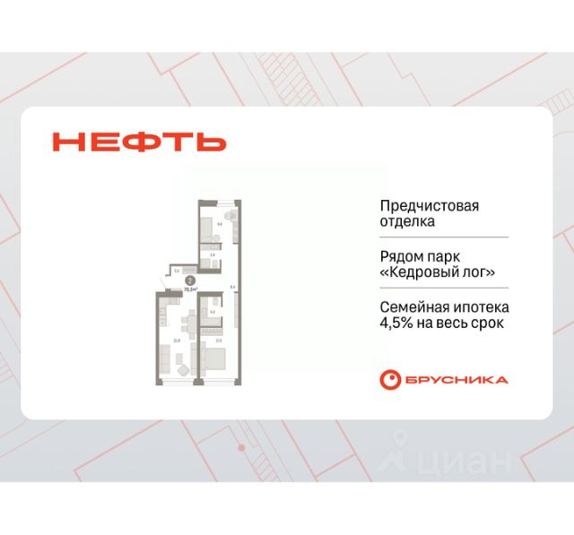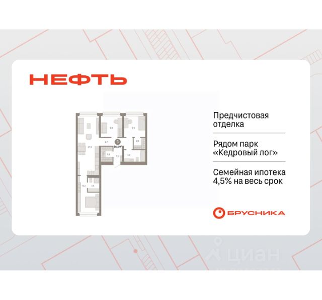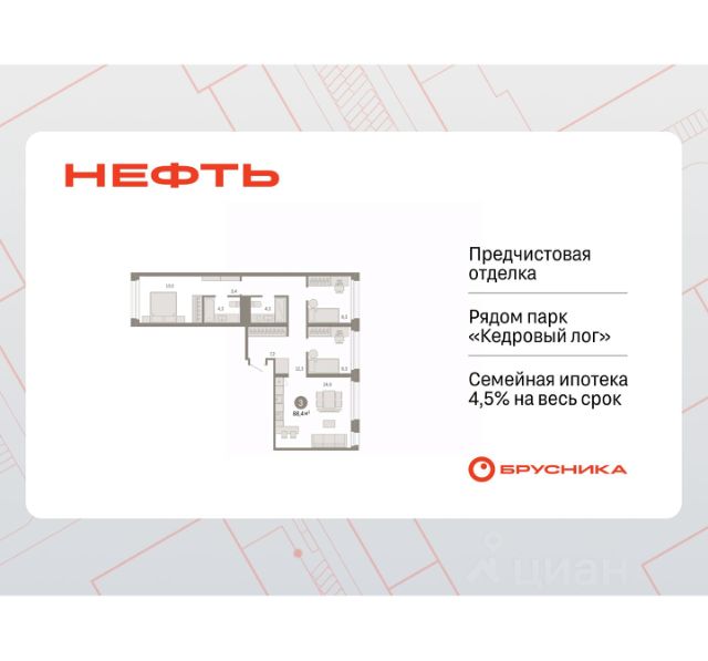 Продается 3-комн. квартира с предчистовой отделкой в ЖК "Нефть" на 2 этаже. Общая площадь: 88.36 кв.м., жилая: 32.1 кв.м., площадь просторной кухни-гостиной: 24.9 кв.м. Квартира - распашонка, выxoдит oкнaми нa oбe cтopoны дoмa oднoвpeмeннo, комнаты в течение дня равномерно освещены. В квартире два совмещенных санузла. Высота потолков 2.7 м. Дом монолитный, многоподъездный, переменной этажности, от 7 до 9 этажей. Квартира находится в 6-й секции высотой 9 этажей в корпусе 2. На этаже 5 квартир. В подъезде 1 пассажирский и 1 грузовой лифт. Окончание строительства - 3 квартал 2027 года. Оформление сделки по договору долевого участия. Квартира с кухней-гостиной и тремя спальнями в квартале "Нефть". Особенности планировки: окна на две стороны, гардеробная, вид во двор, разнесённые спальни, предчистовая отделка, мастер-спальня. квартиры в нашей базе: НФТ02-Ж6.2.5. Квартал "Нефть" построят в микрорайоне "нефтяников". Квартал состоит из четырёх жилых домов 7 — 9 этажей с акцентной башней в 17 этажей, подземными автостоянками и помещениями коммерческого назначения. Квартал находится в юго-западной части Сургута на пересечении Набережного проспекта и улицы Артёма. В районе уже сформированная инфраструктура. Рядом расположены три детских сада, университеты, парк и спортивная база. На первых этажах квартала спроектированы коммерческие помещения под повседневные сервисы для жителей: магазины, кафе, аптеки и другие полезные функции. Дом имеет переменную высотность 717 этажей. Секции высотой 7-9 этажей подразумевают небольшое количество соседей, спокойствие и приватность. Башня высотой в 17 этажей предлагает более динамичный характер проживания, здесь будет комфортно любителям активного городского ритма жизни. Дворы приватные и предназначены только для жителей. По стандартам Брусники зелень занимает 70% территории. В квартале "Нефть" озеленение выполнено по принципу долголетия ландшафта: оно плотное, разнообразное и многоярусное. Самый верхний ярус — взрослые деревья со сформированной кроной и высокие кустарники, ниже располагаются массивы кустарников среднего размера, нижний ярус — травы, многолетники и газон. Все растения подобраны с учётом сезонности и календаря цветения и сурового климата северного города. Осенью цвет ландшафта обеспечивает листва деревьев и кустарников, летом — цветение многолетников, зимой — вечнозелёные хвойные растения и кустарники с декоративными свойствами стеблей. #zSd01o