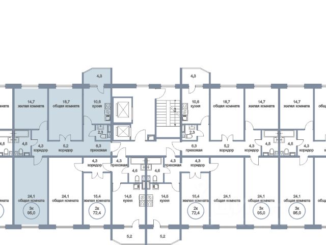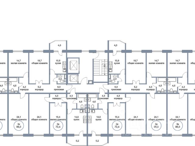 Просторная жилая площадь составляет 44.4 квадратных метра, включая светлую и тёплую кухню размером 14.8 квадратных метров, где приятно готовить и проводить время с семьёй. Три комнаты позволяют удобно организовать пространство под нужды каждого члена семьи, а наличие более чем одного санузла добавляет дополнительное удобство для большой семьи или при приёме гостей.