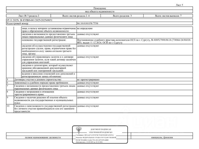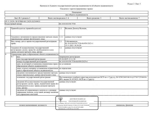 Данные получены с сайта ГИС Торги. Должник: Великов Д., собственник: Великов Д. Лот: Нежилое помещение (гараж), площадь 68,80 кв.м., кадастровый номер 86:10:0101038:7529, г. Сургут, ул. Республики 71/2, гараж 87, н/ц: 1177100 р, з-к: 176565 р., код: 0001, рег. 25-542-2