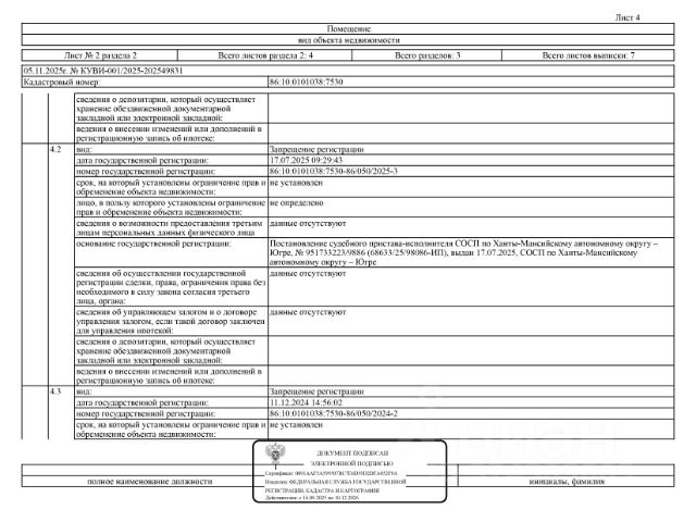 Данные получены с сайта ГИС Торги. Должник: Великов Д., собственник: Великов Д. Лот: Нежилое помещение (гараж), площадь 35,30 кв.м., кадастровый номер 86:10:0101038:7528, г. Сургут, ул. Республики 71/2, гараж 86, н/ц: 728100 р, з-к: 109215 р., код: 0001, рег. 25-542-1