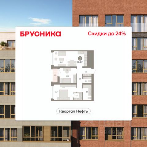 Монолитно-панельный дом в ЖК "Кедровый лог", площадью 71,1 кв.м. (без учета балконов), кухня 24 кв.м.
