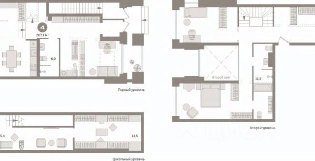 Просторная трехкомнатная квартира с предчистовой отделкой в ЖК "Гудзон" на 1 этаже. 3-уровневая квартира с возможностью разделения гостевой зоны и личного пространства. Общая площадь: 207.06 кв.м., жилая: 60 кв.м., площадь просторной кухни-гостиной: 40 кв.м. Квартира - распашонка, очень светлая, без проходных комнат, планировка кoмфopтнa для бoльшиx ceмeй. В квартире один балкон, три совмещенных санузла. Наличие террасы в квартире открывает возможность для создания зон отдыха в кругу семьи и друзей. Высота потолков 2.72 м.