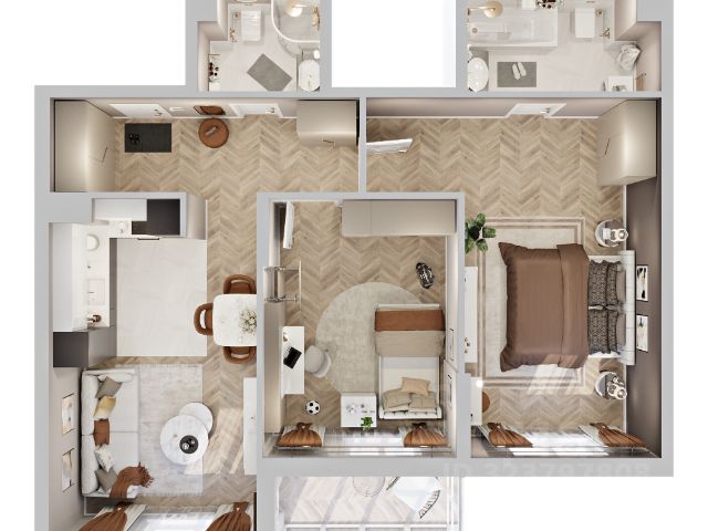 Квартал находится в западной части Сургута на пересечении Югорского тракта и улицы Игоря Киртбая. Можно быстро добраться до любой точки города по Югорскому тракту. В районе уже сформированная инфраструктура. Рядом расположены крупные торговые центры, три детских сада, поликлиника, парк и спортивная база. На первых этажах квартала спроектированы коммерческие помещения под повседневные сервисы для жителей: магазины, кафе, аптеки и другие полезные функции. Проектом развития территории предусмотрено строительство детского сада и общеобразовательной школы.