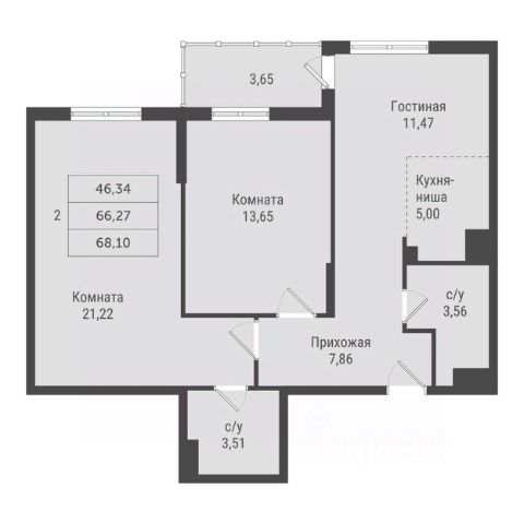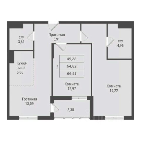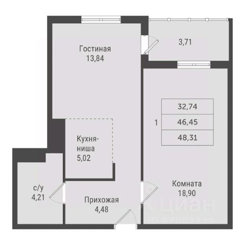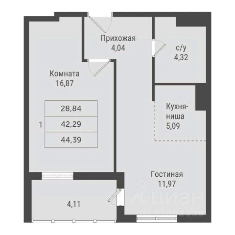 • ✅ Минимальная площадь: 44,3 м²