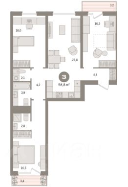 Однокомнатная квартира с предчистовой отделкой в ЖК "Новин" на 2 этаже. Общая площадь: 58.92 кв.м. Высота потолков 2.74 м. Дом монолитный, многоподъездный, переменной этажности, от 8 до 17 этажей. Квартира находится в 5-й секции высотой 17 этажей в корпусе 5. На этаже 6 квартир. В подъезде 1 пассажирский и 1 грузовой лифт. На сегодняшний день строительство окончено, дом сдан в 1 квартале 2025 года. Оформление сделки по договору купли-продажи. Квартира с кухней-гостиной и одной спальней в квартале "Новин". Особенности планировки: балкон, окна на две стороны, предчистовая отделка. квартиры в нашей базе: НС-ГП5-5-202. Квартал "Новин" расположен на западе Сургута в районе с хорошо развитой инфраструктурой. Рядом — парк "Кедровый Лог", детские сады, поликлиника, продуктовые магазины и торговые центры. До центра города — 20 минут на автомобиле. Пять домов уже заселены. Ещё три находятся на этапе возведения. Квартал находится в западной части Сургута на пересечении Югорского тракта и улицы Игоря Киртбая. Можно быстро добраться до любой точки города по Югорскому тракту. В районе уже сформированная инфраструктура. Рядом расположены крупные торговые центры, три детских сада, поликлиника, парк и спортивная база. На первых этажах квартала спроектированы коммерческие помещения под повседневные сервисы для жителей: магазины, кафе, аптеки и другие полезные функции. Проектом развития территории предусмотрено строительство детского сада и общеобразовательной школы. Во дворах предусмотрены сценарии для разных категорий жителей, в том числе и площадки для тихого отдыха с фонтаном и арт объектом. Детская площадка раскрывает игровой потенциал территории за счёт разных возможных типов взаимодействий, среди которых присутствуют: контакт с природой, смена уровня игры и контролируемый риск, сотрудничество и игра в команде, а также спокойный сценарий с качелями. Между домами второй очереди мы спроектировали общественное пространство. Здесь также расположатся спортивные и игровые площадки, велопарковки и площадь событий. Главной точкой притяжения станет фонтан. #zTlSma