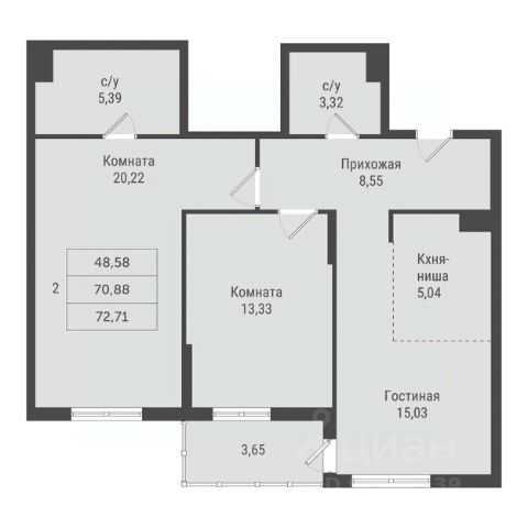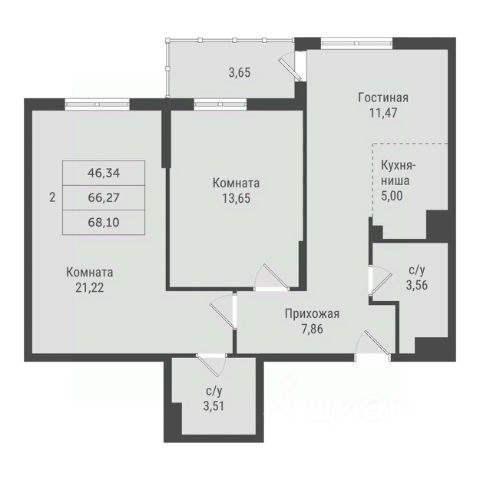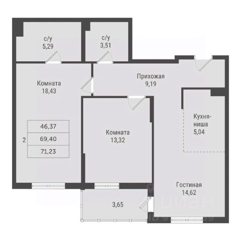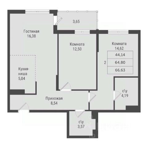 Двухкомнатные от 57 до 79 м2
