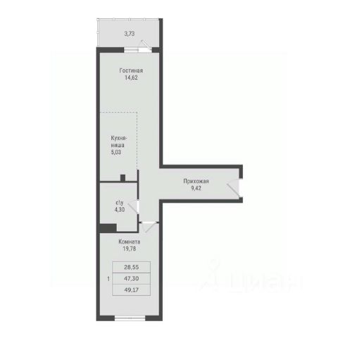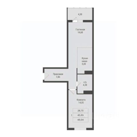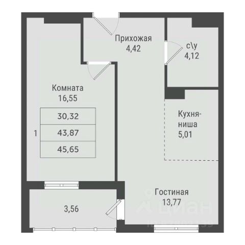Однокомнатные от 38 до 46 м2