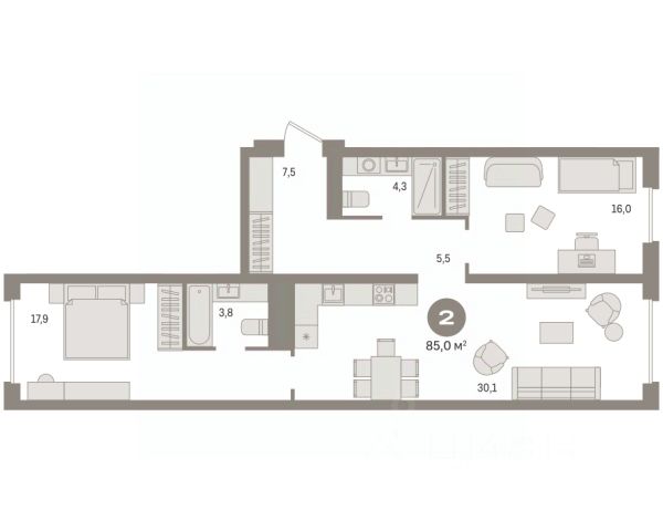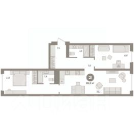 Двухкомнатная квартира с предчистовой отделкой в ЖК "Новин" на 4 этаже. Общая площадь: 79.87 кв.м., жилая: 36.2 кв.м., площадь просторной кухни-гостиной: 25.7 кв.м. Комнаты изолированные, все окна выходят на одну сторону. В квартире один балкон, два совмещенных санузла. Высота потолков 2.7 м. Дом монолитный, многоподъездный, переменной этажности, от 8 до 17 этажей. Квартира находится в 5-й секции высотой 8 этажей в корпусе 7. На этаже 6 квартир. В подъезде 1 пассажирский и 1 грузовой лифт. Окончание строительства - 2 квартал 2027 года. Оформление сделки по договору долевого участия. Квартира с кухней-гостиной и двумя спальнями в квартале "Новин". Особенности планировки: балкон, гардеробная, мастер-спальня, предчистовая отделка, разнесённые спальни. квартиры в нашей базе: НСВ07-Ж5.4.5. Квартал "Новин" расположен на западе Сургута в районе с хорошо развитой инфраструктурой. Рядом — парк "Кедровый Лог", детские сады, поликлиника, продуктовые магазины и торговые центры. До центра города — 20 минут на автомобиле. Пять домов уже заселены. Ещё три находятся на этапе возведения. Квартал находится в западной части Сургута на пересечении Югорского тракта и улицы Игоря Киртбая. Можно быстро добраться до любой точки города по Югорскому тракту. В районе уже сформированная инфраструктура. Рядом расположены крупные торговые центры, три детских сада, поликлиника, парк и спортивная база. На первых этажах квартала спроектированы коммерческие помещения под повседневные сервисы для жителей: магазины, кафе, аптеки и другие полезные функции. Проектом развития территории предусмотрено строительство детского сада и общеобразовательной школы. Во дворах предусмотрены сценарии для разных категорий жителей, в том числе и площадки для тихого отдыха с фонтаном и арт объектом. Детская площадка раскрывает игровой потенциал территории за счёт разных возможных типов взаимодействий, среди которых присутствуют: контакт с природой, смена уровня игры и контролируемый риск, сотрудничество и игра в команде, а также спокойный сценарий с качелями. Между домами второй очереди мы спроектировали общественное пространство. Здесь также расположатся спортивные и игровые площадки, велопарковки и площадь событий. Главной точкой притяжения станет фонтан. #ZWeBlw
