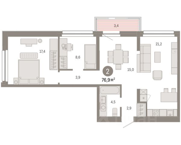 Двухкомнатная квартира от застройщика с предчистовой отделкой в ЖК "Нефть" на 5 этаже. Общая площадь: 70.34 кв.м., жилая: 27.5 кв.м., площадь просторной кухни-гостиной: 21.6 кв.м. Квартира - распашонка, без проходных комнат, окна выходят на paзные стороны дома. В квартире два балкона, два совмещенных санузла. Высота потолков 2.7 м. Дом монолитный, многоподъездный, переменной этажности, от 7 до 9 этажей. Квартира находится в 1-й секции высотой 7 этажей в корпусе 2. На этаже 10 квартир. В подъезде 1 пассажирский и 1 грузовой лифт. Окончание строительства - 3 квартал 2027 года. Оформление сделки по договору долевого участия. Квартира с кухней-гостиной и двумя спальнями в квартале "Нефть". Особенности планировки: окна на две стороны, гардеробная, вид во двор, лоджия, разнесённые спальни, предчистовая отделка, мастер-спальня, балкон. квартиры в нашей базе: НФТ02-Ж1.5.2. Квартал "Нефть" построят в микрорайоне "нефтяников". Квартал состоит из четырёх жилых домов 7 — 9 этажей с акцентной башней в 17 этажей, подземными автостоянками и помещениями коммерческого назначения. Квартал находится в юго-западной части Сургута на пересечении Набережного проспекта и улицы Артёма. В районе уже сформированная инфраструктура. Рядом расположены три детских сада, университеты, парк и спортивная база. На первых этажах квартала спроектированы коммерческие помещения под повседневные сервисы для жителей: магазины, кафе, аптеки и другие полезные функции. Дом имеет переменную высотность 717 этажей. Секции высотой 7-9 этажей подразумевают небольшое количество соседей, спокойствие и приватность. Башня высотой в 17 этажей предлагает более динамичный характер проживания, здесь будет комфортно любителям активного городского ритма жизни. Дворы приватные и предназначены только для жителей. По стандартам Брусники зелень занимает 70% территории. В квартале "Нефть" озеленение выполнено по принципу долголетия ландшафта: оно плотное, разнообразное и многоярусное. Самый верхний ярус — взрослые деревья со сформированной кроной и высокие кустарники, ниже располагаются массивы кустарников среднего размера, нижний ярус — травы, многолетники и газон. Все растения подобраны с учётом сезонности и календаря цветения и сурового климата северного города. Осенью цвет ландшафта обеспечивает листва деревьев и кустарников, летом — цветение многолетников, зимой — вечнозелёные хвойные растения и кустарники с декоративными свойствами стеблей. #Z5d0mE Продается квартира на 5 этаже в Сургуте.