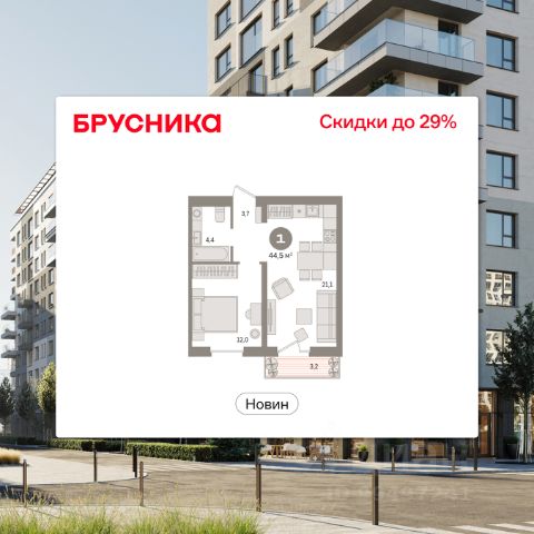 1-комн. квартира с предчистовой отделкой в ЖК "Новин" на 5 этаже. Общая площадь: 44.47 кв.м., жилая: 12 кв.м., площадь просторной кухни-гостиной: 21.1 кв.м. Все окна выходят на одну сторону. В квартире один балкон, один совмещенный санузел. Высота потолков 2.7 м. Дом монолитный, многоподъездный, переменной этажности, от 8 до 17 этажей. Квартира находится во 2-й секции высотой 9 этажей в корпусе 7. На этаже 7 квартир. В подъезде 1 пассажирский и 1 грузовой лифт. Окончание строительства - 2 квартал 2027 года. Оформление сделки по договору долевого участия. Квартира с кухней-гостиной и одной спальней в квартале "Новин". Особенности планировки: балкон, вид во двор, предчистовая отделка. квартиры в нашей базе: НСВ07-Ж2.5.7. Квартал "Новин" расположен на западе Сургута в районе с хорошо развитой инфраструктурой. Рядом — парк "Кедровый Лог", детские сады, поликлиника, продуктовые магазины и торговые центры. До центра города — 20 минут на автомобиле. Пять домов уже заселены. Ещё три находятся на этапе возведения. Квартал находится в западной части Сургута на пересечении Югорского тракта и улицы Игоря Киртбая. Можно быстро добраться до любой точки города по Югорскому тракту. В районе уже сформированная инфраструктура. Рядом расположены крупные торговые центры, три детских сада, поликлиника, парк и спортивная база. На первых этажах квартала спроектированы коммерческие помещения под повседневные сервисы для жителей: магазины, кафе, аптеки и другие полезные функции. Проектом развития территории предусмотрено строительство детского сада и общеобразовательной школы. Во дворах предусмотрены сценарии для разных категорий жителей, в том числе и площадки для тихого отдыха с фонтаном и арт объектом. Детская площадка раскрывает игровой потенциал территории за счёт разных возможных типов взаимодействий, среди которых присутствуют: контакт с природой, смена уровня игры и контролируемый риск, сотрудничество и игра в команде, а также спокойный сценарий с качелями. Между домами второй очереди мы спроектировали общественное пространство. Здесь также расположатся спортивные и игровые площадки, велопарковки и площадь событий. Главной точкой притяжения станет фонтан. #ZMauBI
