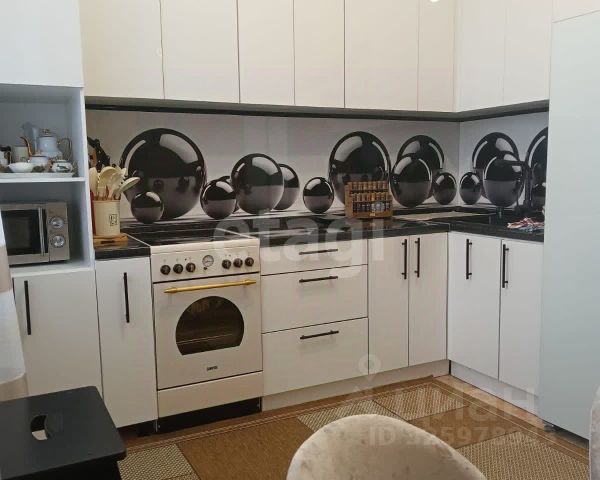 При продаже остается встроенный кухонный гарнитур с электроплитой и духовкой, посудомоечная машина, холодильник Аристон, обеденная зона (стол,4 стула), в комнате - мягкий уголок, шторы.