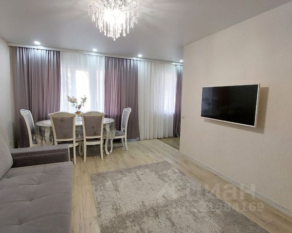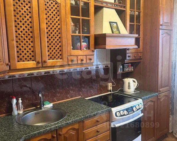 Квартира с косметическим ремонтом 7-летней давности: потолки - побелка, в коридоре и ванной комнате потолок подвесной. Входная дверь металлическая. Двери в квартире деревянные: дверь в большую комнату двустворчатая с цветным желтым стеклом, дверь в кухню с матовым стеклом и декором, над ней витраж из цветного стекла. Окна выходят на запад, деревянные с двойными рамами на кухне и в маленькой комнате, евроокна из дерева в большой комнате и на балконе. Выход на балкон из большой комнаты. Балкон не утеплен. Пол в комнатах ламинат повышенной плотности, на кухне плитка с подогревом, в санузле и ванной плитка, в коридоре ламинат из пластика, в зоне прихожей плитка. В квартире имеется кладовая. Ванная комната полноценная (ванная и раковина с тумбой), имеются отдельные смесители над ванной и раковиной. Туалет отдельный. Кухня отдельная. Варочная поверхность электрическая. Квартира теплая: на батарее в большой комнате установлены заглушки, принудительно перекрывающие доступ горячей воды. Интернет-коммуникации подведены. Мебель, бытовая техника остаются по договоренности. На лестничной площадке расположены 3 квартиры. Мусоропровод расположен на лестничной площадке между этажами. На первом этаже есть просторная кладовая для хранения вещей общего пользования. Домофон в рабочем состоянии. В доме 3 года назад выполнен капитальный ремонт фасада и крыши, покраска стен и побелка потолков в подъезде. Подъезды в чистоте и порядке. Лифта нет. Соседи доброжелательные. Двор тихий с небольшой парковой зоной, беседкой, скамейками. Много парковочных мест. Две оборудованные детские площадки. Продуктовый магазин во дворе.