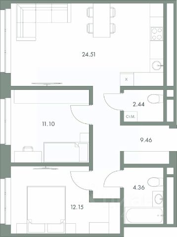 Готовые квартиры со скидкой до 35%. Звоните, мы вам все подробно расскажем! Продается 1-комн. квартира с предчистовой отделкой в ЖК "Новин" на 9 этаже. Общая площадь: 51.24 кв.м., жилая: 16.3 кв.м., площадь просторной кухни-гостиной: 23 кв.м. Все окна выходят на одну сторону. В квартире одна лоджия, один совмещенный санузел. Высота потолков 2.7 м. Дом монолитный, многоподъездный, переменной этажности, от 8 до 17 этажей. Квартира находится во 2-й секции высотой 9 этажей в корпусе 7. На этаже 7 квартир. В подъезде 1 пассажирский и 1 грузовой лифт. Окончание строительства - 2 квартал 2027 года. Оформление сделки по договору долевого участия. Квартира с кухней-гостиной и одной спальней в квартале "Новин". Особенности планировки: лоджия, предчистовая отделка. квартиры в нашей базе: НСВ07-Ж2.9.3. Квартал "Новин" расположен на западе Сургута в районе с хорошо развитой инфраструктурой. Рядом — парк "Кедровый Лог", детские сады, поликлиника, продуктовые магазины и торговые центры. До центра города — 20 минут на автомобиле. Пять домов уже заселены. Ещё три находятся на этапе возведения. Квартал находится в западной части Сургута на пересечении Югорского тракта и улицы Игоря Киртбая. Можно быстро добраться до любой точки города по Югорскому тракту. В районе уже сформированная инфраструктура. Рядом расположены крупные торговые центры, три детских сада, поликлиника, парк и спортивная база. На первых этажах квартала спроектированы коммерческие помещения под повседневные сервисы для жителей: магазины, кафе, аптеки и другие полезные функции. Проектом развития территории предусмотрено строительство детского сада и общеобразовательной школы. Во дворах предусмотрены сценарии для разных категорий жителей, в том числе и площадки для тихого отдыха с фонтаном и арт объектом. Детская площадка раскрывает игровой потенциал территории за счёт разных возможных типов взаимодействий, среди которых присутствуют: контакт с природой, смена уровня игры и контролируемый риск, сотрудничество и игра в команде, а также спокойный сценарий с качелями. Между домами второй очереди мы спроектировали общественное пространство. Здесь также расположатся спортивные и игровые площадки, велопарковки и площадь событий. Главной точкой притяжения станет фонтан. #zSBI69