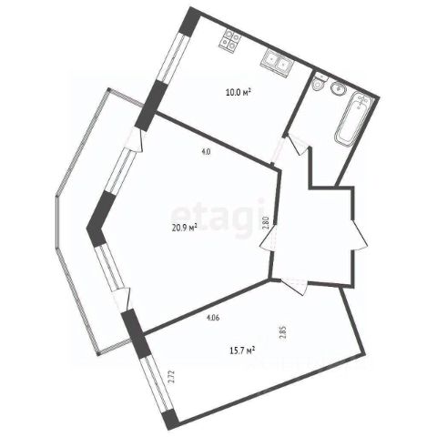 Площадь частей помещения: жилая площадь комнат: 21,8м2 и 13,6м2; кухня 8,3м2, коридор 11,3м2, ванная 2,7м2, туалет 1,3м2, кладовая 1,9м2, балкон 3,4м2. Общая площадь: 60,9м2. Высота от пола до потолка: 2.75 см.
