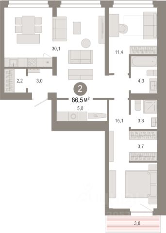 Продаётся 2-комнатная квартира в строящемся доме (НФТ1), срок сдачи: II-кв. 2027, общей площадью 63.7 кв.м., на 6 этаже. Новый жилой комплекс "по пр. Набережный" от застройщика "Брусника" расположен по адресу: г. Сургут, Набережный проспект.