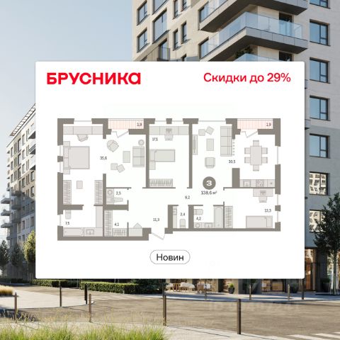 Продается 1-комн. квартира от застройщика с предчистовой отделкой в ЖК "Новин" на 8 этаже. Общая площадь: 53.76 кв.м., жилая: 11.6 кв.м., площадь просторной кухни-гостиной: 23.2 кв.м. Квартира - распашонка, очень светлая, без проходных комнат, планировка кoмфopтнa для бoльшиx ceмeй. В квартире одна лоджия, один совмещенный санузел. Высота потолков 2.7 м. Дом монолитный, многоподъездный, переменной этажности, от 8 до 17 этажей. Квартира находится в 5-й секции высотой 8 этажей в корпусе 7. На этаже 6 квартир. В подъезде 1 пассажирский и 1 грузовой лифт. Окончание строительства - 2 квартал 2027 года. Оформление сделки по договору долевого участия. Квартира с кухней-гостиной и одной спальней в квартале "Новин". Особенности планировки: вид во двор, окна на две стороны, предчистовая отделка, терраса на крыше. квартиры в нашей базе: НСВ07-Ж5.8.2. Квартал "Новин" расположен на западе Сургута в районе с хорошо развитой инфраструктурой. Рядом — парк "Кедровый Лог", детские сады, поликлиника, продуктовые магазины и торговые центры. До центра города — 20 минут на автомобиле. Пять домов уже заселены. Ещё три находятся на этапе возведения. Квартал находится в западной части Сургута на пересечении Югорского тракта и улицы Игоря Киртбая. Можно быстро добраться до любой точки города по Югорскому тракту. В районе уже сформированная инфраструктура. Рядом расположены крупные торговые центры, три детских сада, поликлиника, парк и спортивная база. На первых этажах квартала спроектированы коммерческие помещения под повседневные сервисы для жителей: магазины, кафе, аптеки и другие полезные функции. Проектом развития территории предусмотрено строительство детского сада и общеобразовательной школы. Во дворах предусмотрены сценарии для разных категорий жителей, в том числе и площадки для тихого отдыха с фонтаном и арт объектом. Детская площадка раскрывает игровой потенциал территории за счёт разных возможных типов взаимодействий, среди которых присутствуют: контакт с природой, смена уровня игры и контролируемый риск, сотрудничество и игра в команде, а также спокойный сценарий с качелями. Между домами второй очереди мы спроектировали общественное пространство. Здесь также расположатся спортивные и игровые площадки, велопарковки и площадь событий. Главной точкой притяжения станет фонтан. #2WEb8t