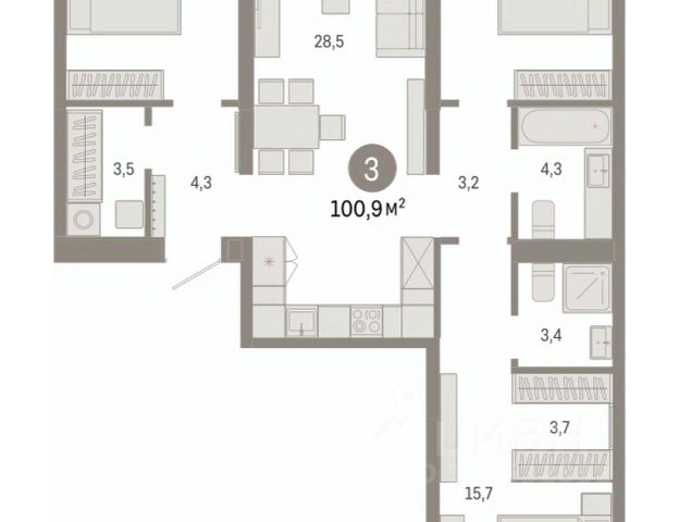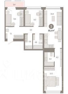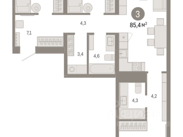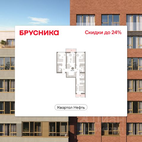 3-комн. квартира с предчистовой отделкой в ЖК "Нефть" на 3 этаже. Общая площадь: 80.9 кв.м., жилая: 38.1 кв.м., площадь просторной кухни-гостиной: 23.4 кв.м. Угловая квартира, очень светлая, естественная вентиляция при открытии окон. В квартире одна лоджия, один совмещенный санузел. Высота потолков 2.7 м. Дом монолитный, многоподъездный, переменной этажности, от 7 до 17 этажей. Квартира находится в 6-й секции высотой 7 этажей в корпусе 1. На этаже 6 квартир. В подъезде 1 грузовой лифт. Окончание строительства - 2 квартал 2027 года. Оформление сделки по договору долевого участия. Квартира с кухней-гостиной и тремя спальнями в квартале "Нефть". Особенности планировки: гардеробная, лоджия, предчистовая отделка, рабочий кабинет, разнесённые спальни. квартиры в нашей базе: НФТ01-Ж6.3.2. Квартал "Нефть" построят в микрорайоне "нефтяников". Квартал состоит из четырёх жилых домов 7 — 9 этажей с акцентной башней в 17 этажей, подземными автостоянками и помещениями коммерческого назначения. Квартал находится в юго-западной части Сургута на пересечении Набережного проспекта и улицы Артёма. В районе уже сформированная инфраструктура. Рядом расположены три детских сада, университеты, парк и спортивная база. На первых этажах квартала спроектированы коммерческие помещения под повседневные сервисы для жителей: магазины, кафе, аптеки и другие полезные функции. Дом имеет переменную высотность 717 этажей. Секции высотой 7-9 этажей подразумевают небольшое количество соседей, спокойствие и приватность. Башня высотой в 17 этажей предлагает более динамичный характер проживания, здесь будет комфортно любителям активного городского ритма жизни. Дворы приватные и предназначены только для жителей. По стандартам Брусники зелень занимает 70% территории. В квартале "Нефть" озеленение выполнено по принципу долголетия ландшафта: оно плотное, разнообразное и многоярусное. Самый верхний ярус — взрослые деревья со сформированной кроной и высокие кустарники, ниже располагаются массивы кустарников среднего размера, нижний ярус — травы, многолетники и газон. Все растения подобраны с учётом сезонности и календаря цветения и сурового климата северного города. Осенью цвет ландшафта обеспечивает листва деревьев и кустарников, летом — цветение многолетников, зимой — вечнозелёные хвойные растения и кустарники с декоративными свойствами стеблей. #ZWCtvA