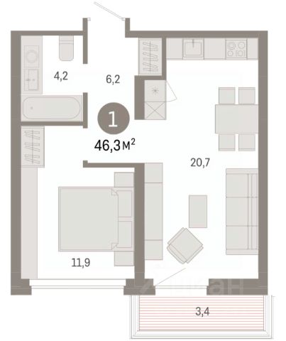 Продается 1-комн. квартира с предчистовой отделкой в ЖК "Нефть" на 3 этаже. Общая площадь: 46.27 кв.м., жилая: 11.9 кв.м., площадь просторной кухни-гостиной: 20.7 кв.м. Все окна выходят на одну сторону. В квартире один балкон, один совмещенный санузел. Высота потолков 2.7 м. Дом монолитный, многоподъездный, переменной этажности, от 7 до 9 этажей. Квартира находится в 5-й секции высотой 7 этажей в корпусе 2. На этаже 5 квартир. В подъезде 1 пассажирский и 1 грузовой лифт. Окончание строительства - 3 квартал 2027 года. Оформление сделки по договору долевого участия. Квартира с кухней-гостиной и одной спальней в квартале "Нефть". Особенности планировки: гардеробная, предчистовая отделка, балкон. квартиры в нашей базе: НФТ02-Ж5.3.2. Квартал "Нефть" построят в микрорайоне "нефтяников". Квартал состоит из четырёх жилых домов 7 — 9 этажей с акцентной башней в 17 этажей, подземными автостоянками и помещениями коммерческого назначения. Квартал находится в юго-западной части Сургута на пересечении Набережного проспекта и улицы Артёма. В районе уже сформированная инфраструктура. Рядом расположены три детских сада, университеты, парк и спортивная база. На первых этажах квартала спроектированы коммерческие помещения под повседневные сервисы для жителей: магазины, кафе, аптеки и другие полезные функции. Дом имеет переменную высотность 717 этажей. Секции высотой 7-9 этажей подразумевают небольшое количество соседей, спокойствие и приватность. Башня высотой в 17 этажей предлагает более динамичный характер проживания, здесь будет комфортно любителям активного городского ритма жизни. Дворы приватные и предназначены только для жителей. По стандартам Брусники зелень занимает 70% территории. В квартале "Нефть" озеленение выполнено по принципу долголетия ландшафта: оно плотное, разнообразное и многоярусное. Самый верхний ярус — взрослые деревья со сформированной кроной и высокие кустарники, ниже располагаются массивы кустарников среднего размера, нижний ярус — травы, многолетники и газон. Все растения подобраны с учётом сезонности и календаря цветения и сурового климата северного города. Осенью цвет ландшафта обеспечивает листва деревьев и кустарников, летом — цветение многолетников, зимой — вечнозелёные хвойные растения и кустарники с декоративными свойствами стеблей. #zm6bsb Купить квартиру с отделкой от застройщика в Сургуте.